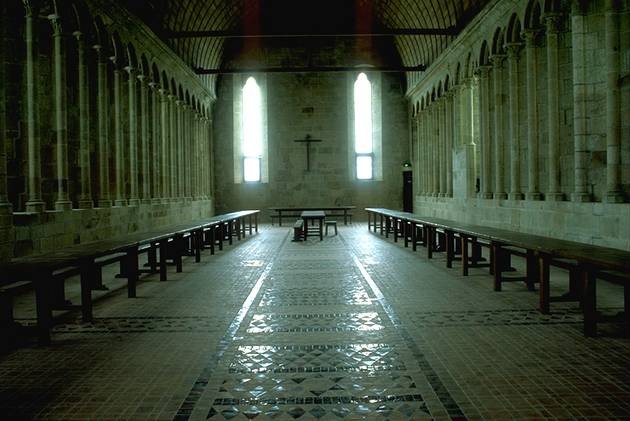 English: Refectory of the abbey of the Mont Saint-Michel.