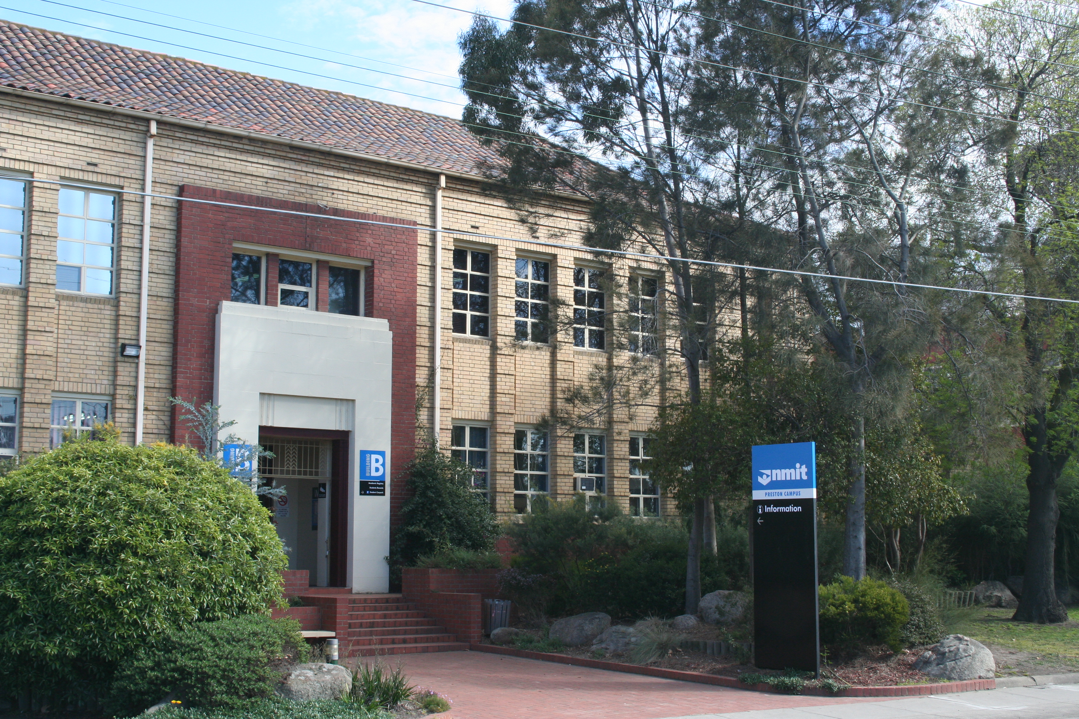 English: Building B, Preston Campus of NMIT from St Georges Road, housing the NMIT Administration. Building was part of the Preston Technical School. |