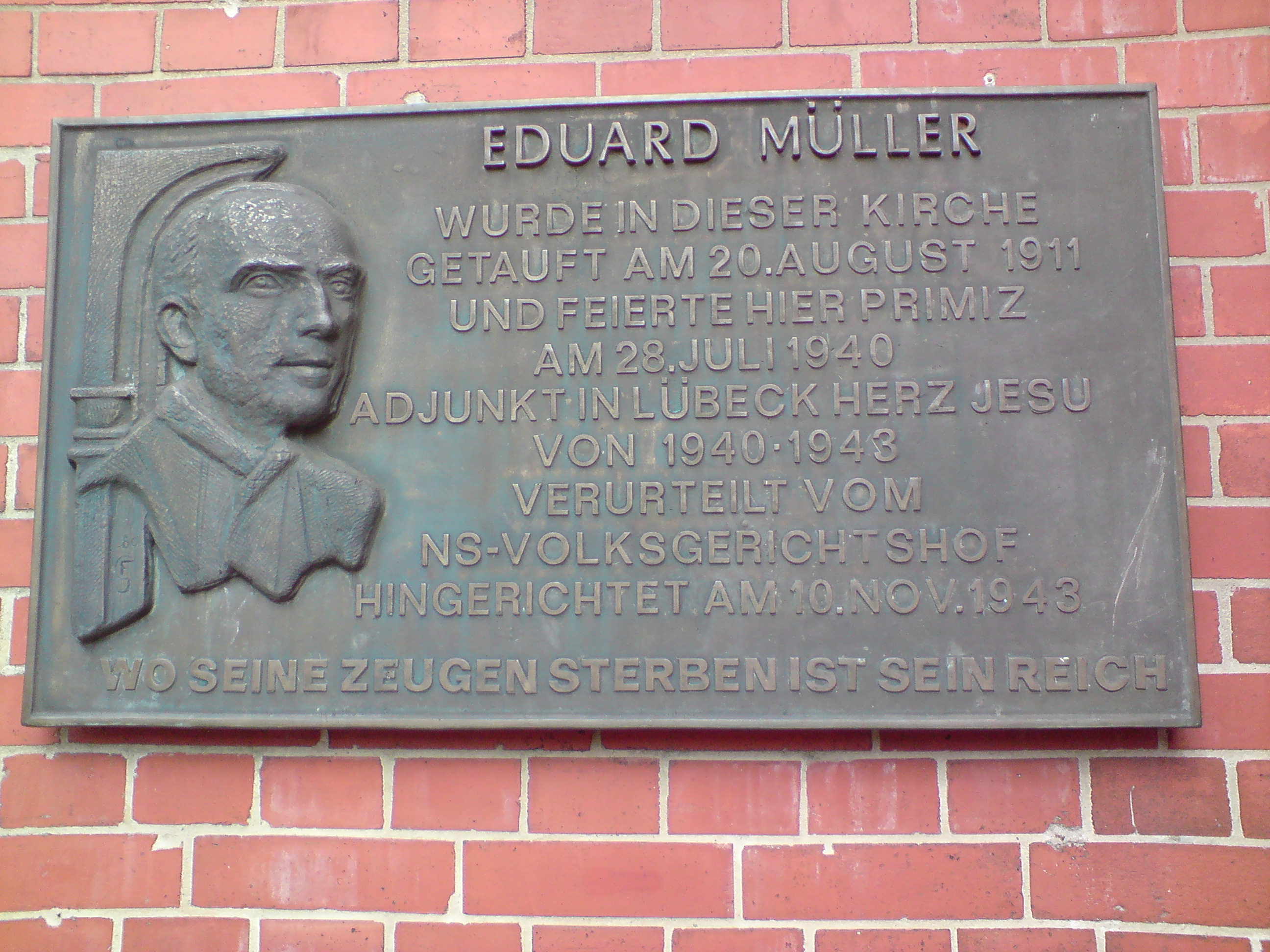 Deutsch: St.Maria-St.Vicelin-Kirche Gedenktafel "Eduard Müller" |