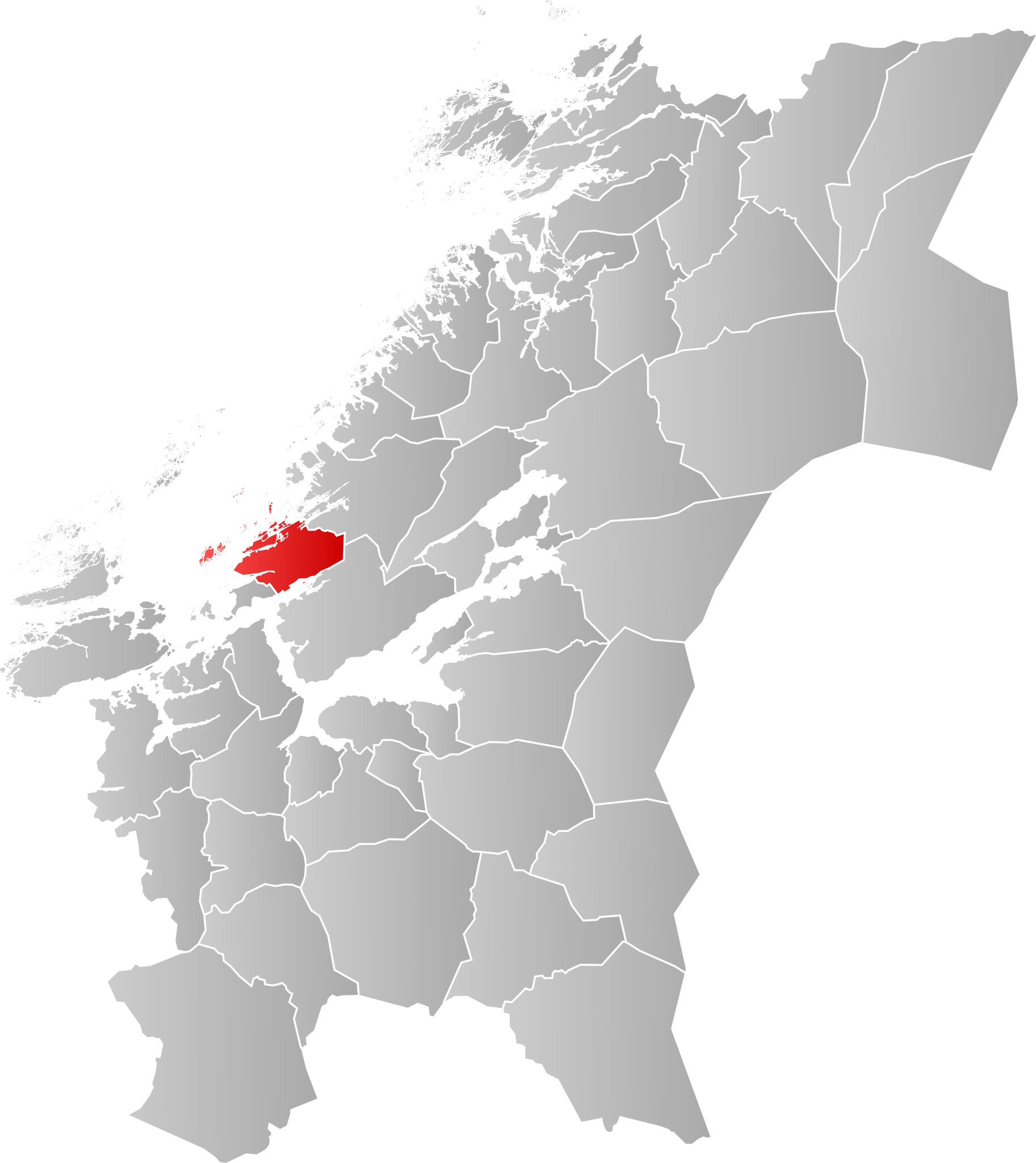 style="background: #ffdddd" class="table-no" | Kart som viser plasseringa til kommunen Bjugn i Trøndelag fylke i Noreg. English: Map showing the position of the municipality of Bjugn within the county of Trøndelag in Norway. |