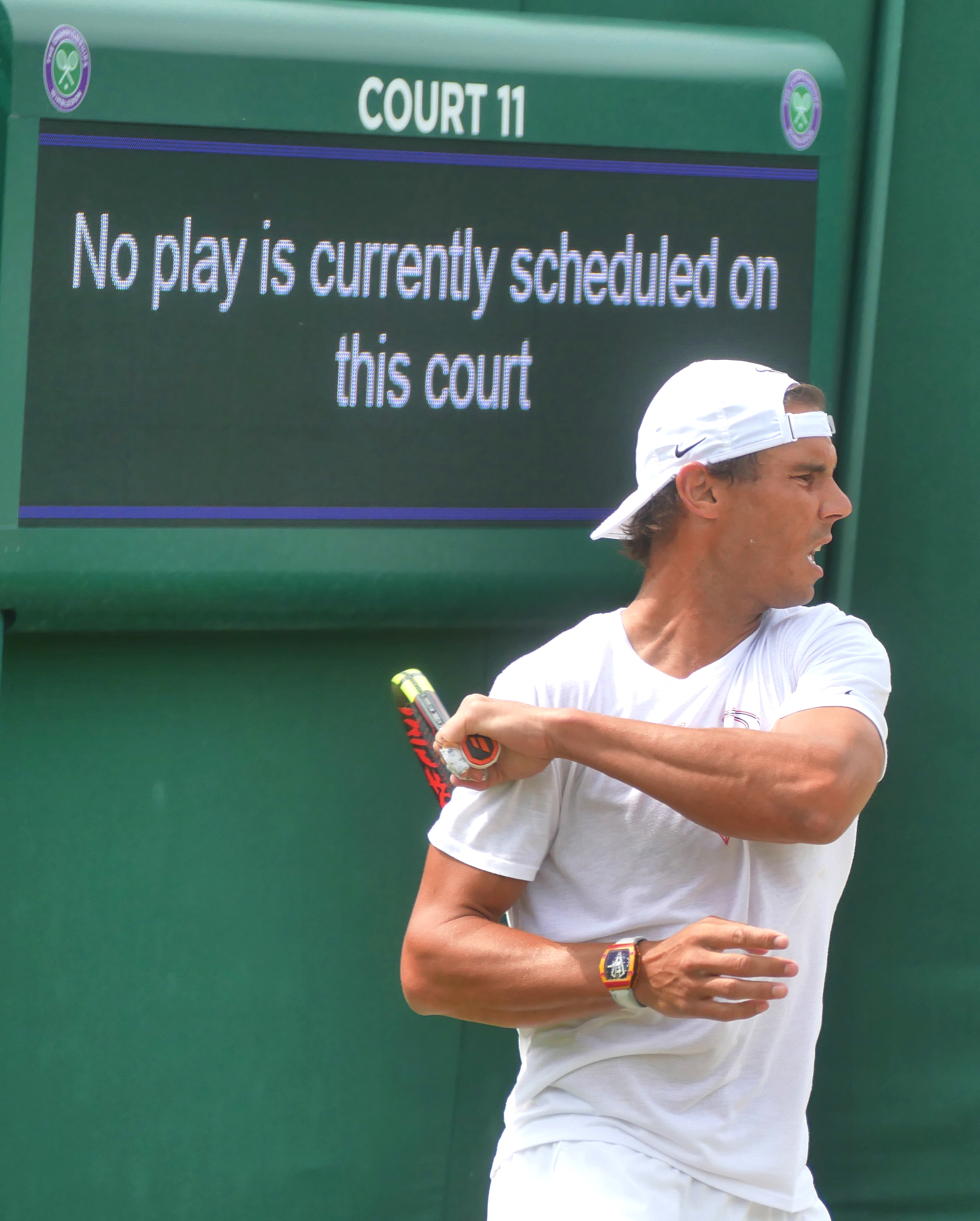English: Rafael Nadal practices on an outside court at Wimbledon July 2019 |