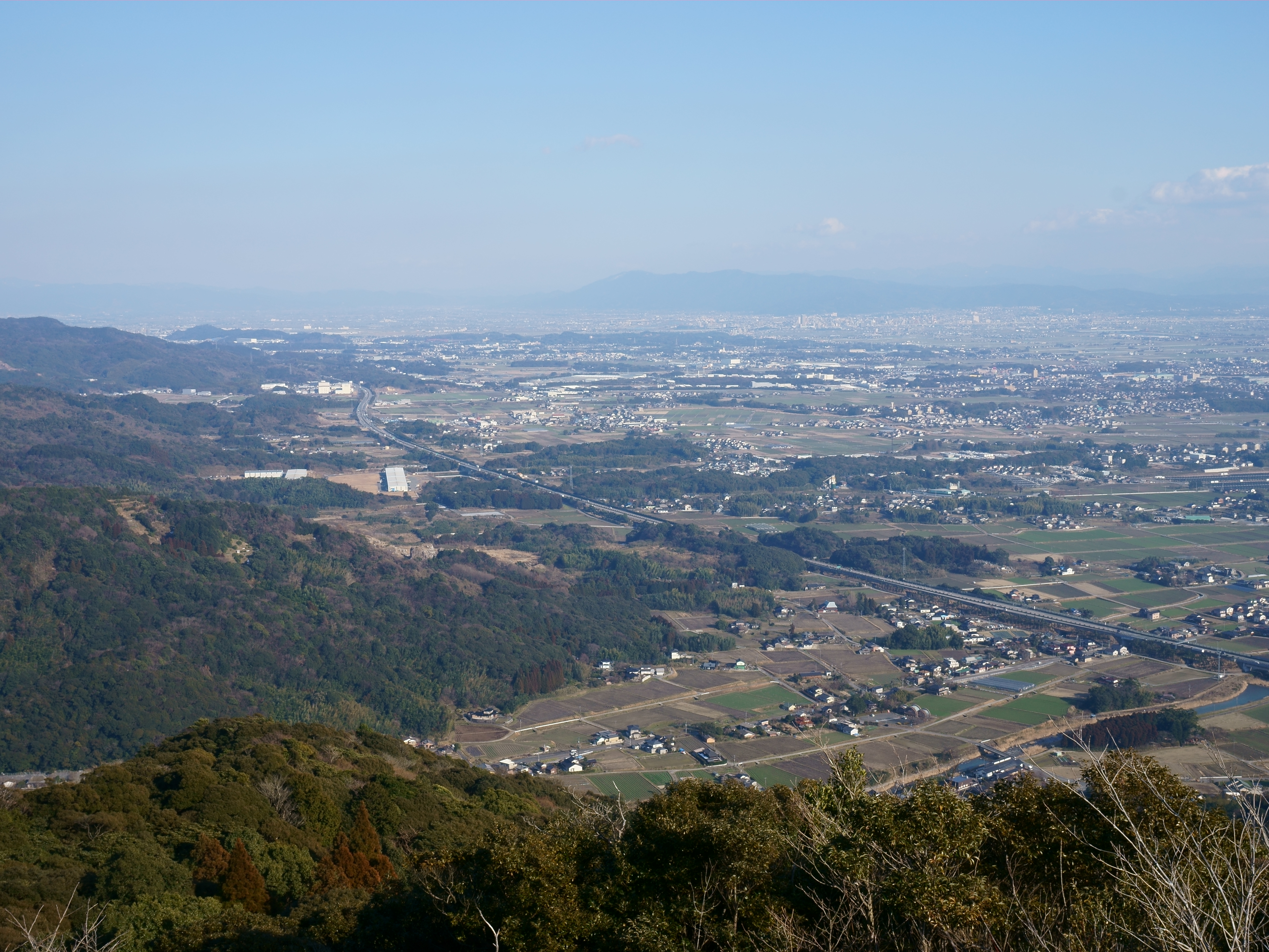 (Japanese) English: View of Nagasaki Expressway at the foot of Sefuri Mountains, from the middle of Mount Kawarake, in Kanzaki city. |