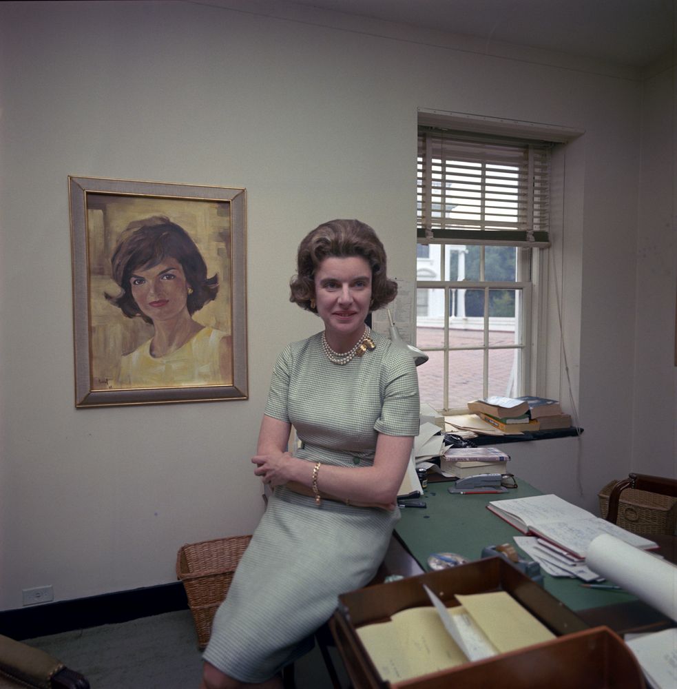 English: ST-C186-1-63 30MAY1963Newly-appointed First Lady Social Secretary Nancy Tuckerman in her office at the White House. Please credit "Cecil Stoughton. White House Photographs. John F. Kennedy Presidential Library and Museum, Boston" |