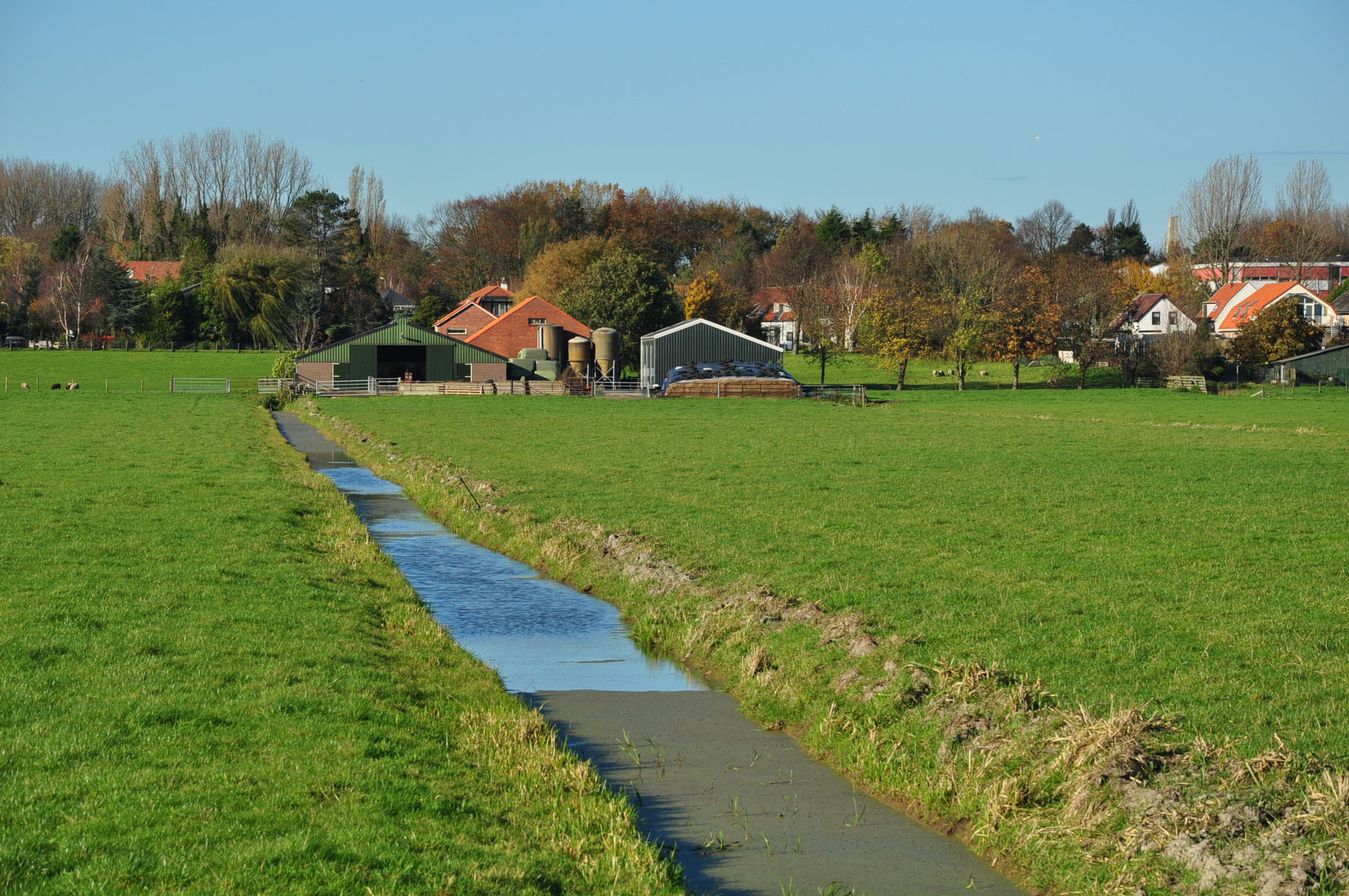 (Dutch) English: A farm in the Starrevaart Polder close to Leidschendam (Province of South Holland, Netherlands). The trees in the background mark the Vliet (canal). |