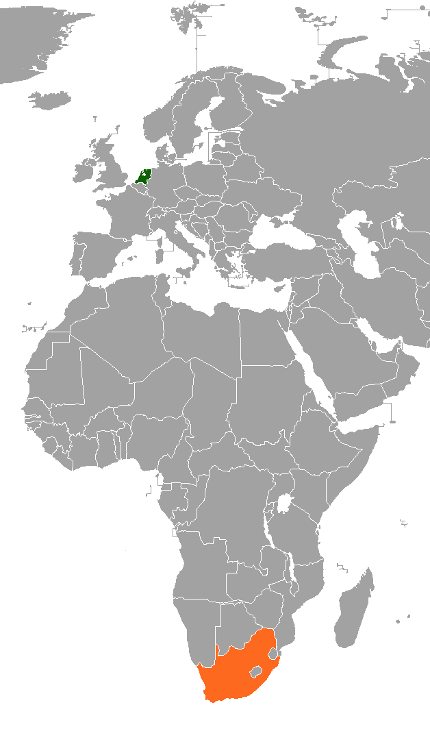 English: Map showing the locations of both the Netherlands and South Africa |
