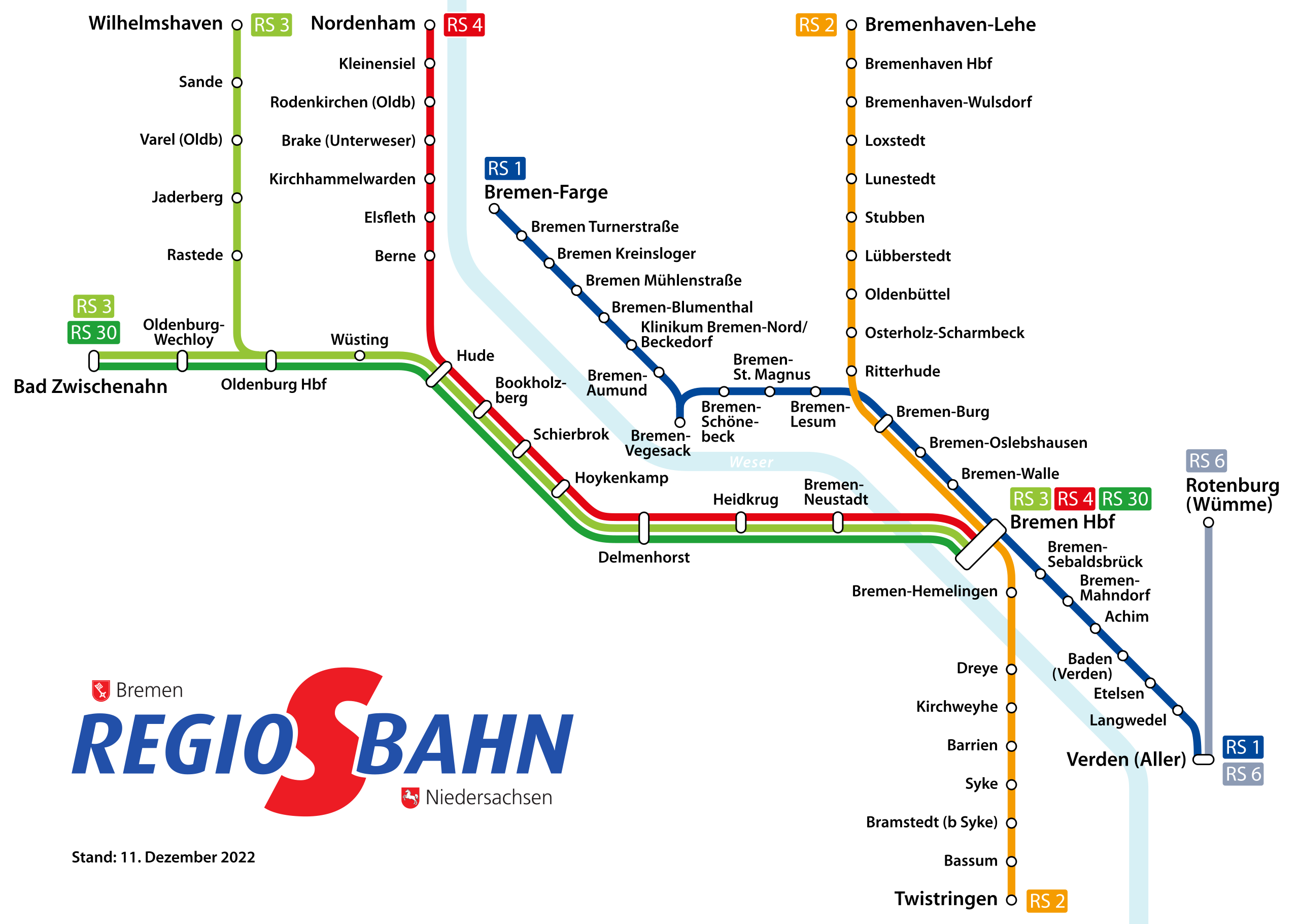 Deutsch: Netzplan der Regio-S-Bahn Bremen/Niedersachsen, Stand 2022 |