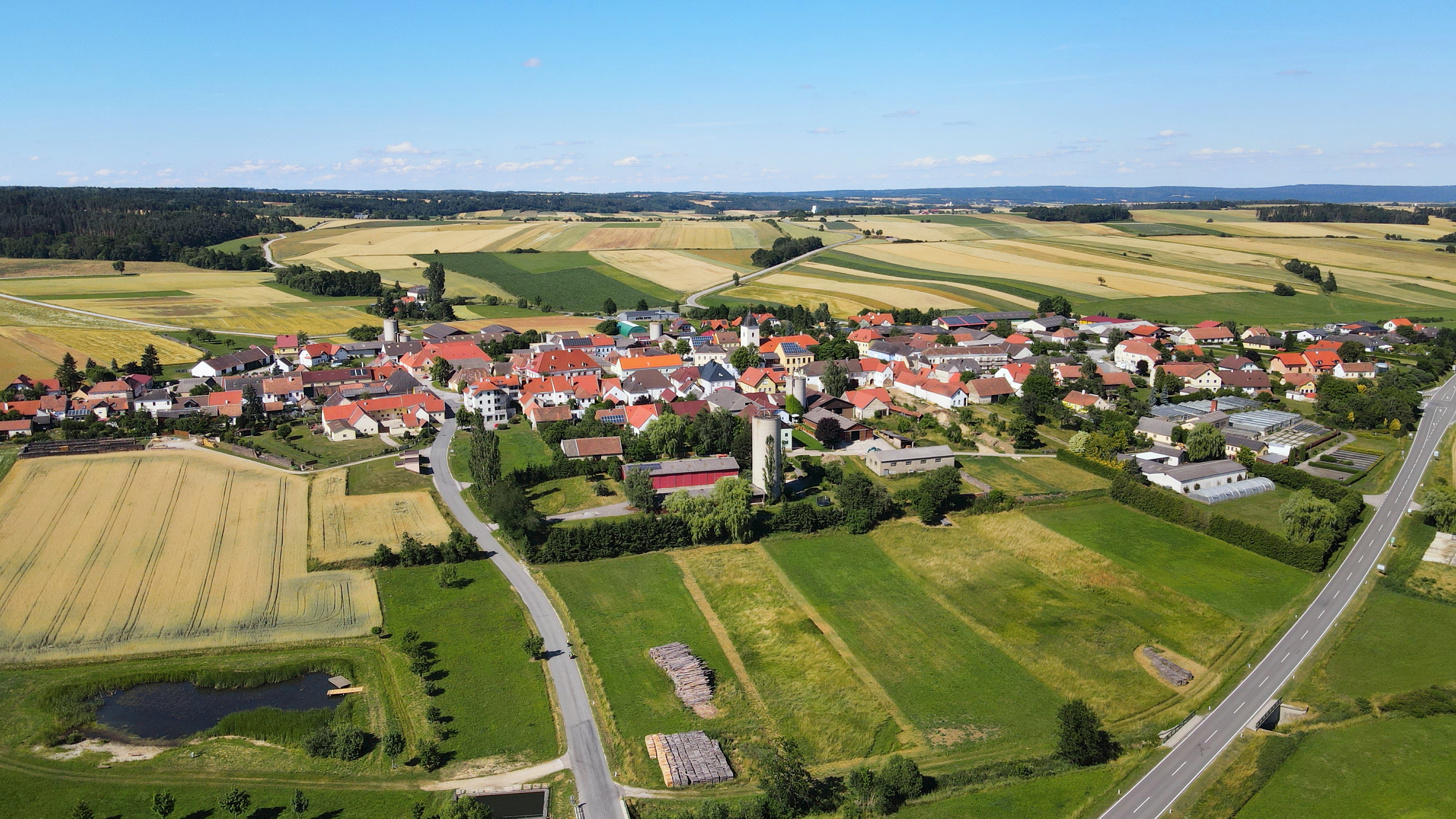 Deutsch: Luftaufnahme des Dorfes Neupölla in der niederösterreichischen Marktgemeinde Pölla.