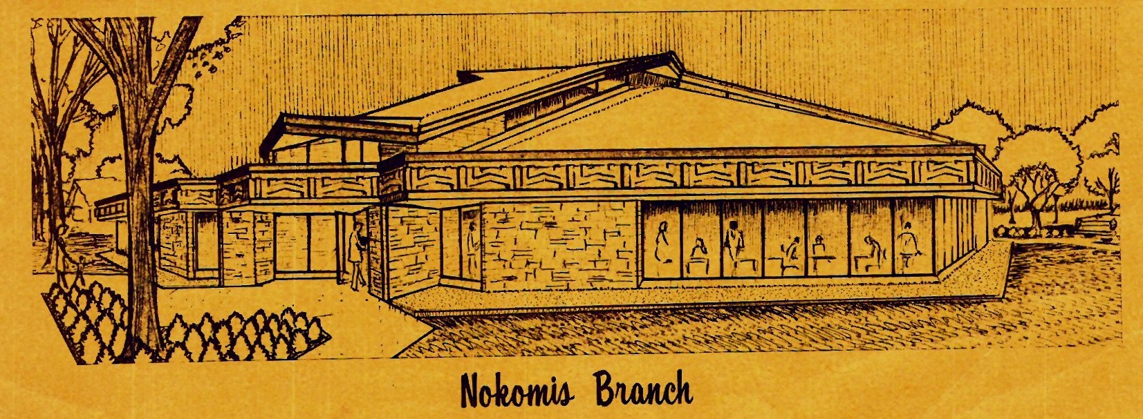 English: A shot of what Nokomis Community Library (Minneapolis, MN) was to look like, from a 1968 brochure. |