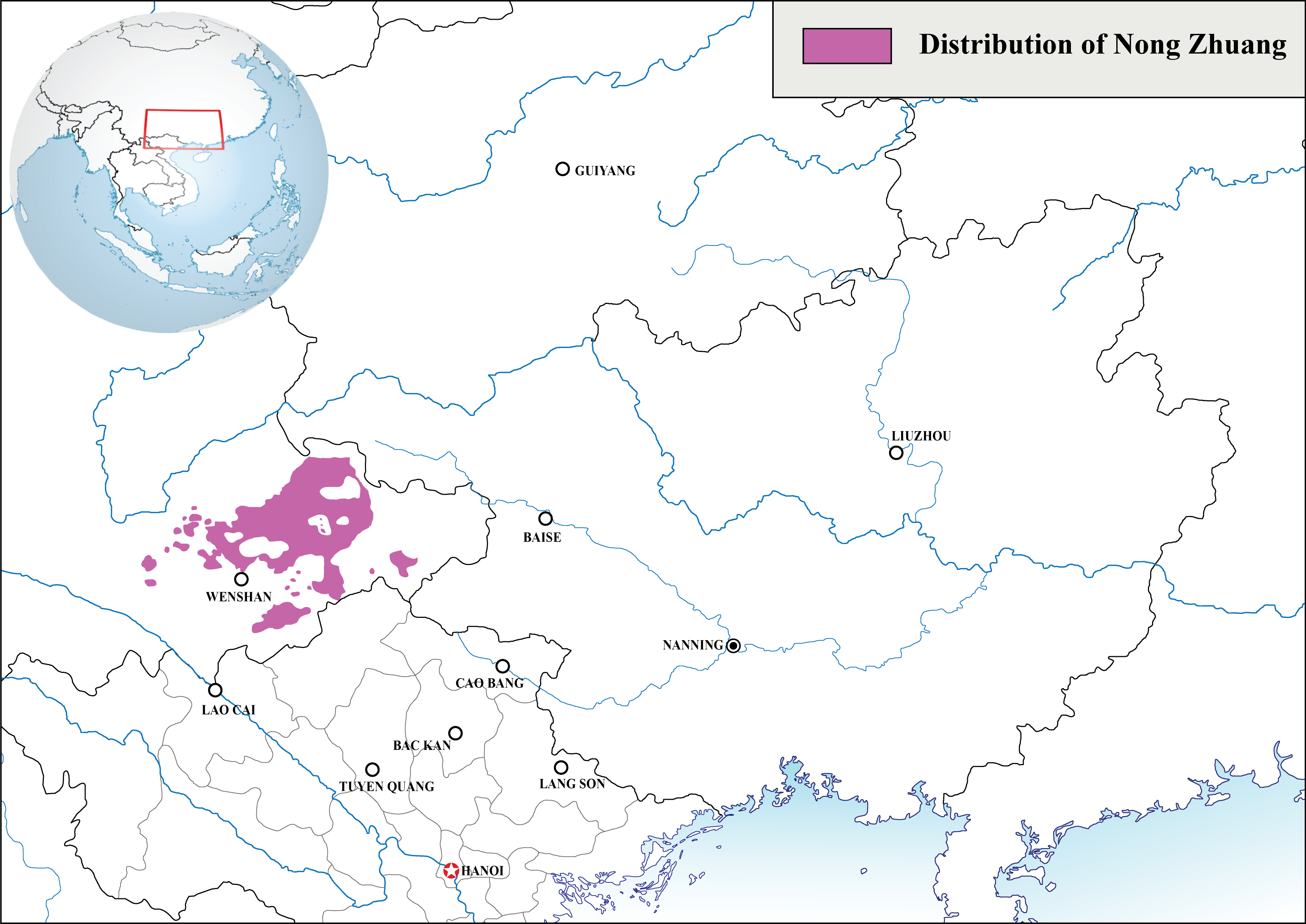 English: Geographic distribution of Nong Zhuang dialect