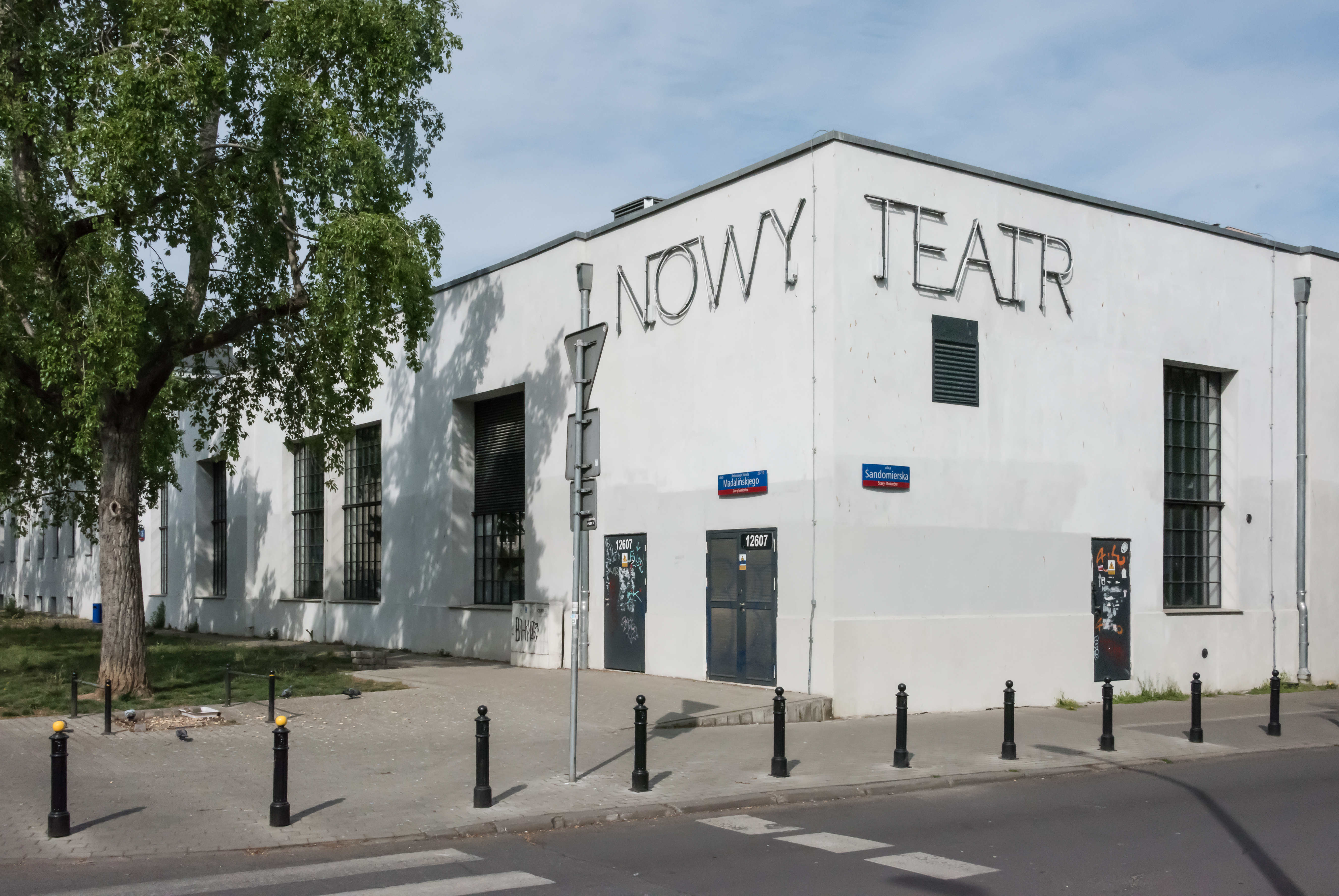 Polski: Nowy Teatr w Warszawie, róg ul. Madalińskiego i Sandomierskiej |