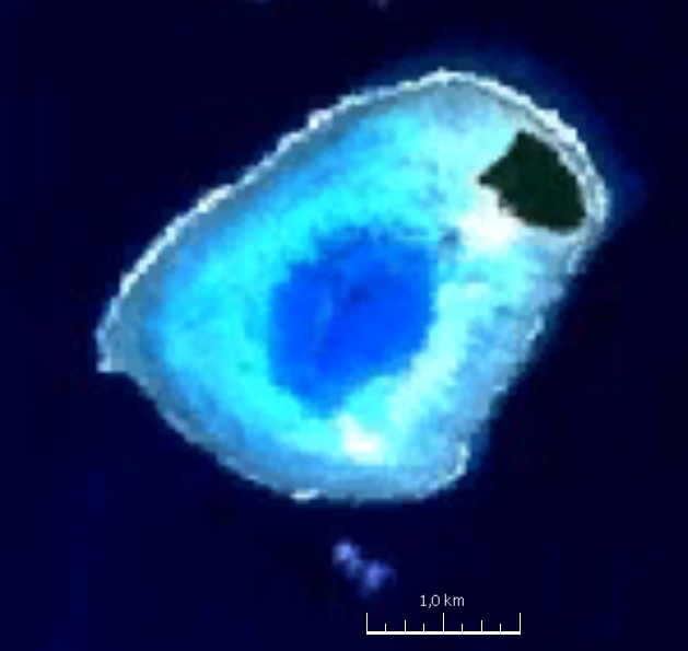 English: Satellite Image of Nukapu Atoll, Reef Islands, Solomon Islands, Pacific Ocean |