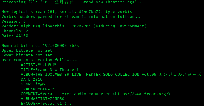 English: Screenshot of ogginfo of an .ogg file |