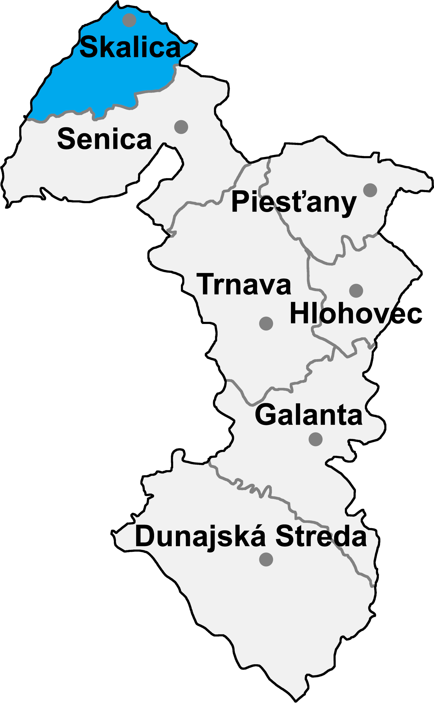 - map of the Trnava region (Trnavský kraj) in Slovakia, district (okres) of Skalica highlighted