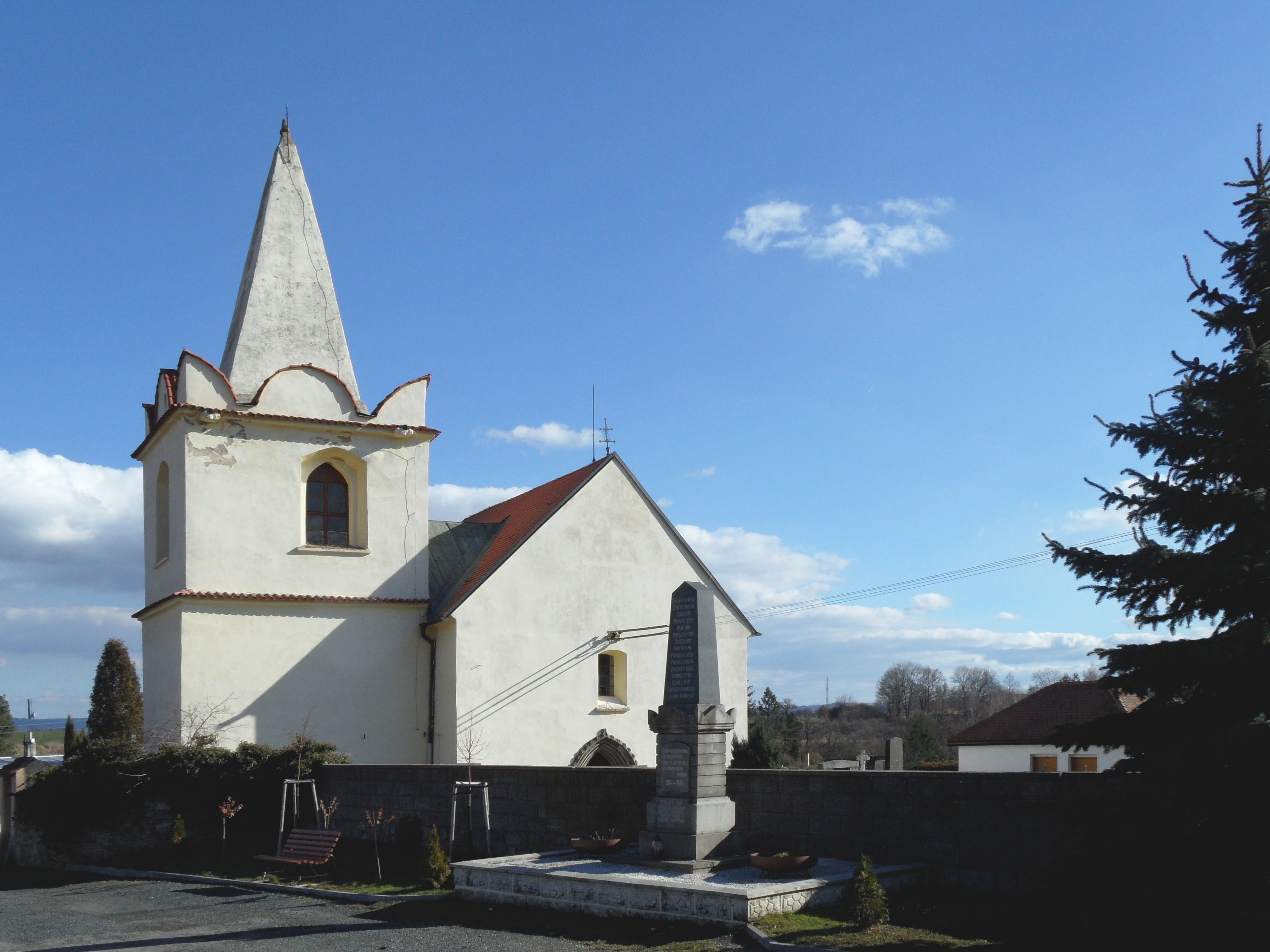 (بالتشيكية) English: Okřesaneč B. Church of St. Bartholomew and Memorial of Victims of WW1, Kutná Hora District, the Czech Republic. |