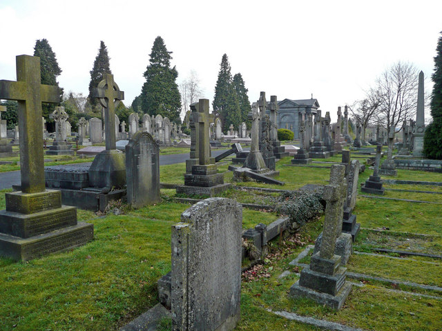 English: Older graves and monuments At Tunbridge Wells Borough cemetery. |