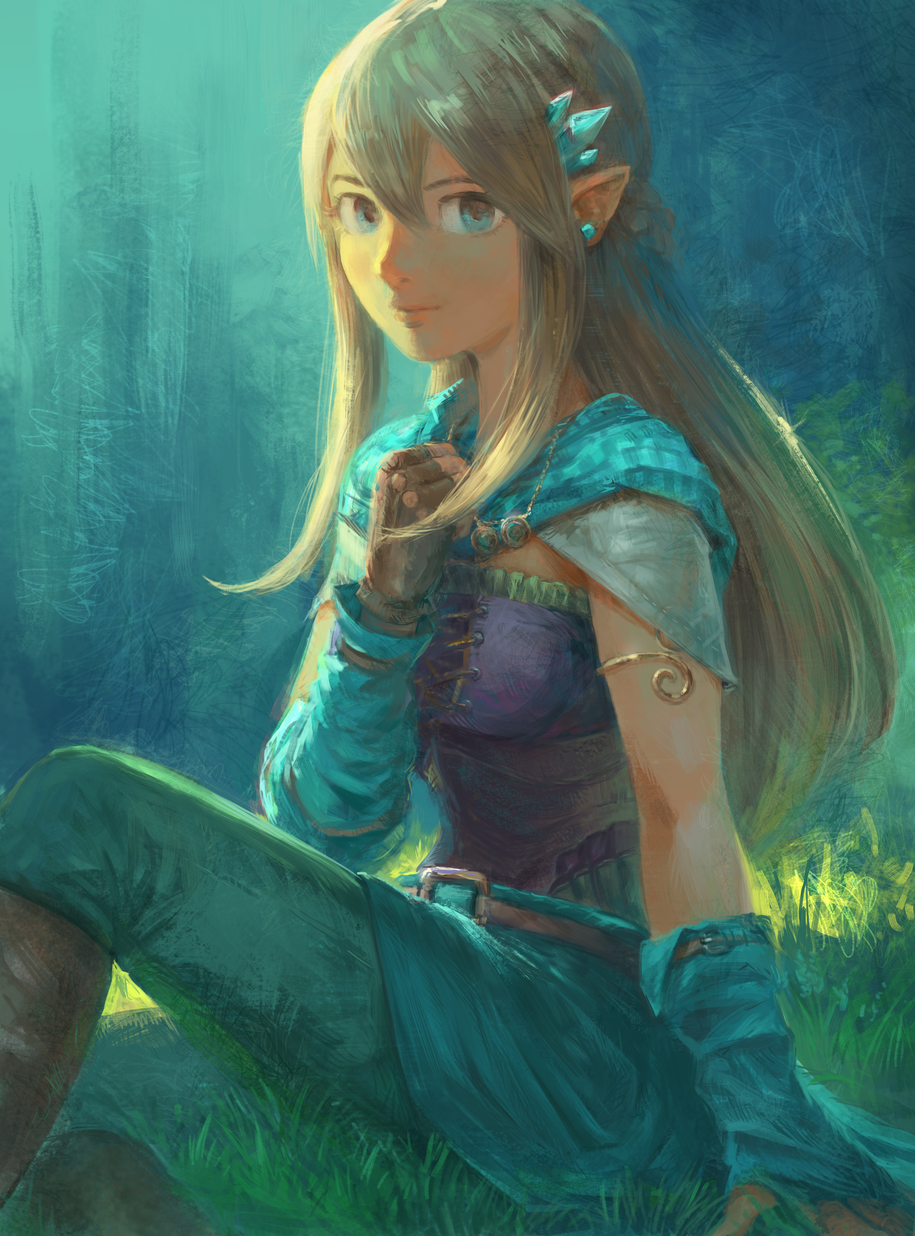 English: Here is my digital painting attempt at pushing the character design of Sara, the OpenGameArt mascot. She is a lovely character and I would like to send here a big thanks to Mandi Paugh for the original creation of this free/libre culture character. It was painted in Krita 5.1, using mainly a flat layer. I attach here the almost not compressed full resolution 3575x4828px, 95% jpg quality version (4,5MB). I hope this concept-art will be useful to another project at some point. If yes, feel free to mention it in the comment (not mandatory, only for my curiosity). |
