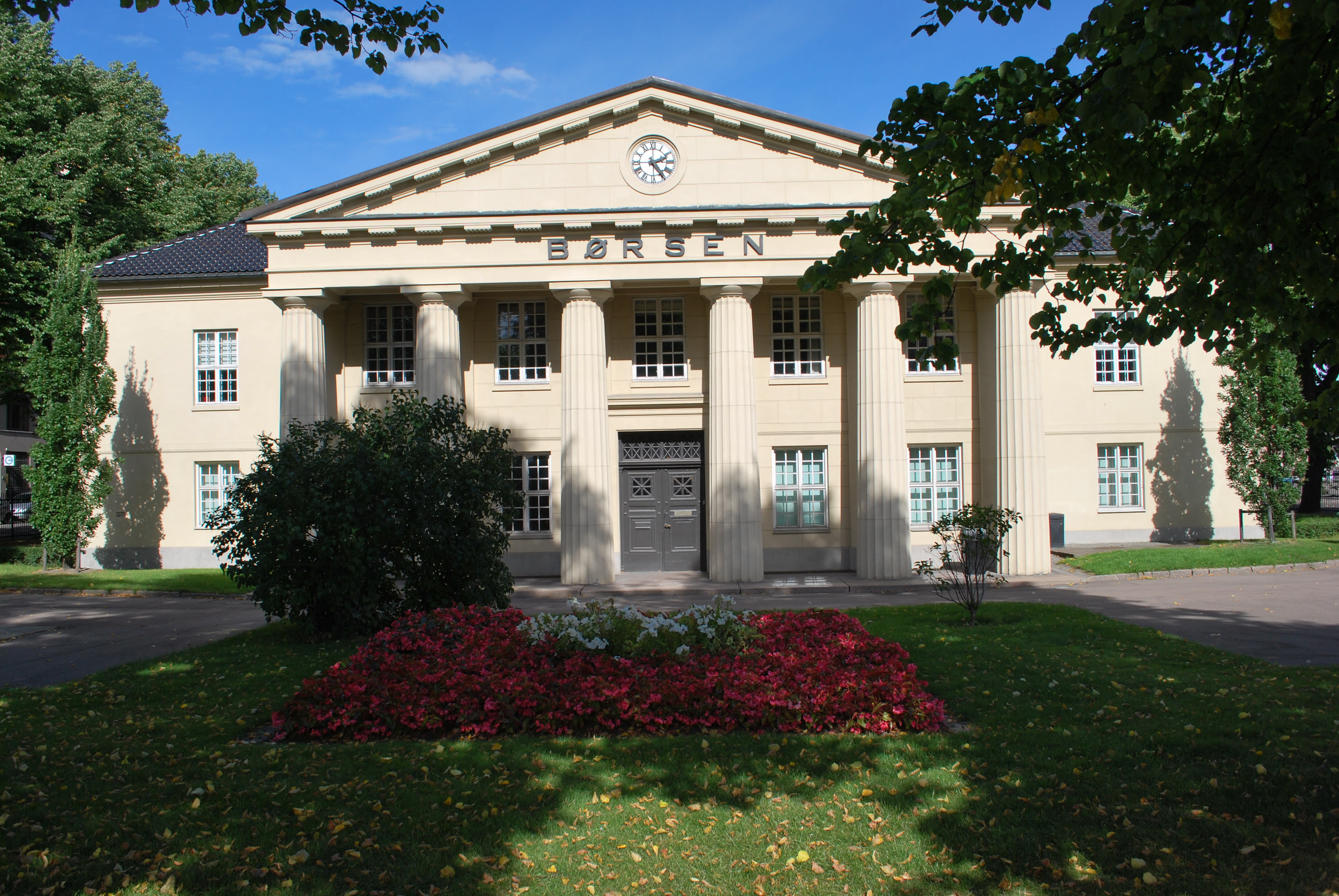 English: Oslo Stock Exchange (Oslo Børs), south wall and garden |
