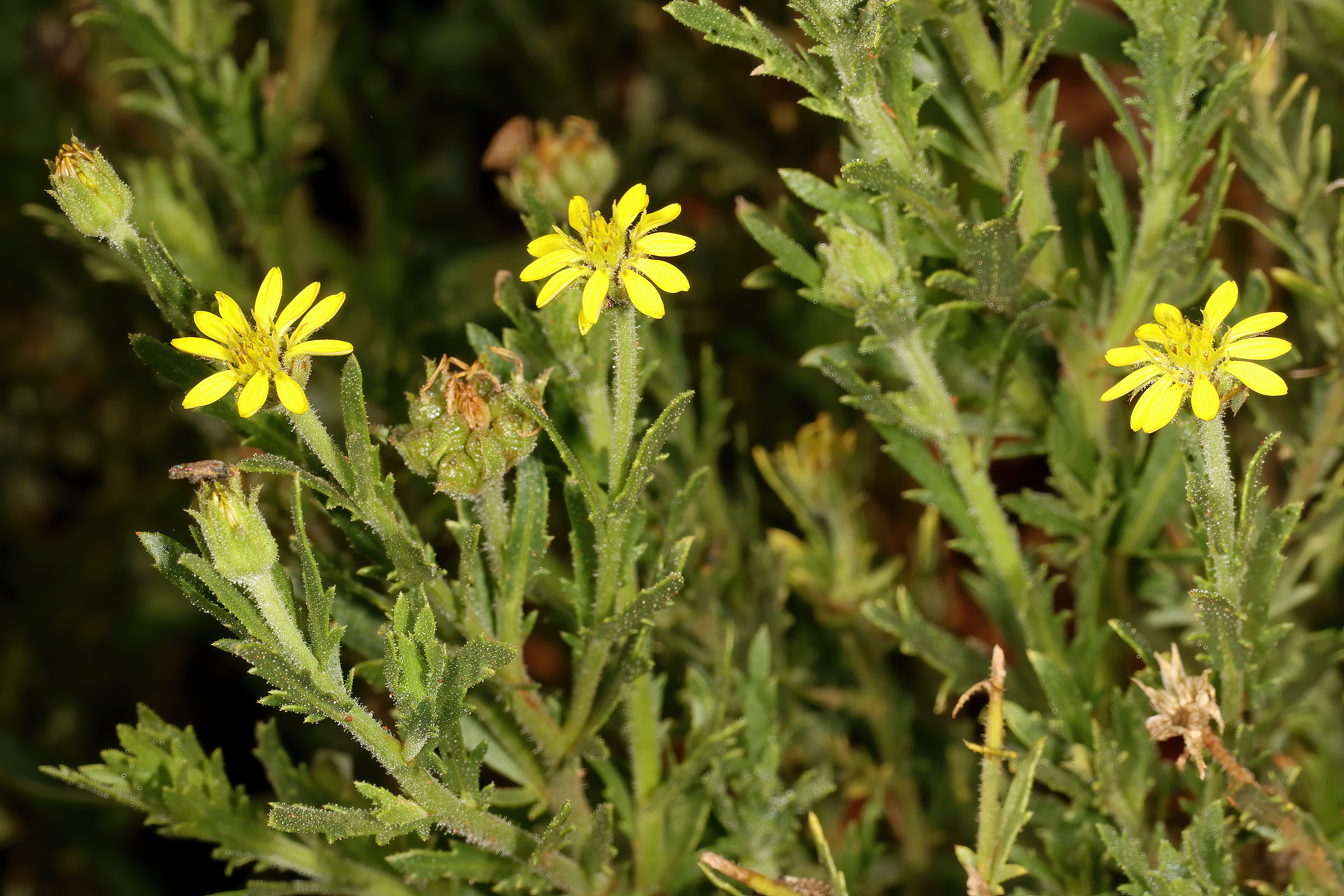 English: Osteospermum muricatum subsp. muricatum, flower and fruiting heads; relict grassland on shale, University of Pretoria Experimental Farm, Hillcrest, Pretoria, Gauteng, South Africa |