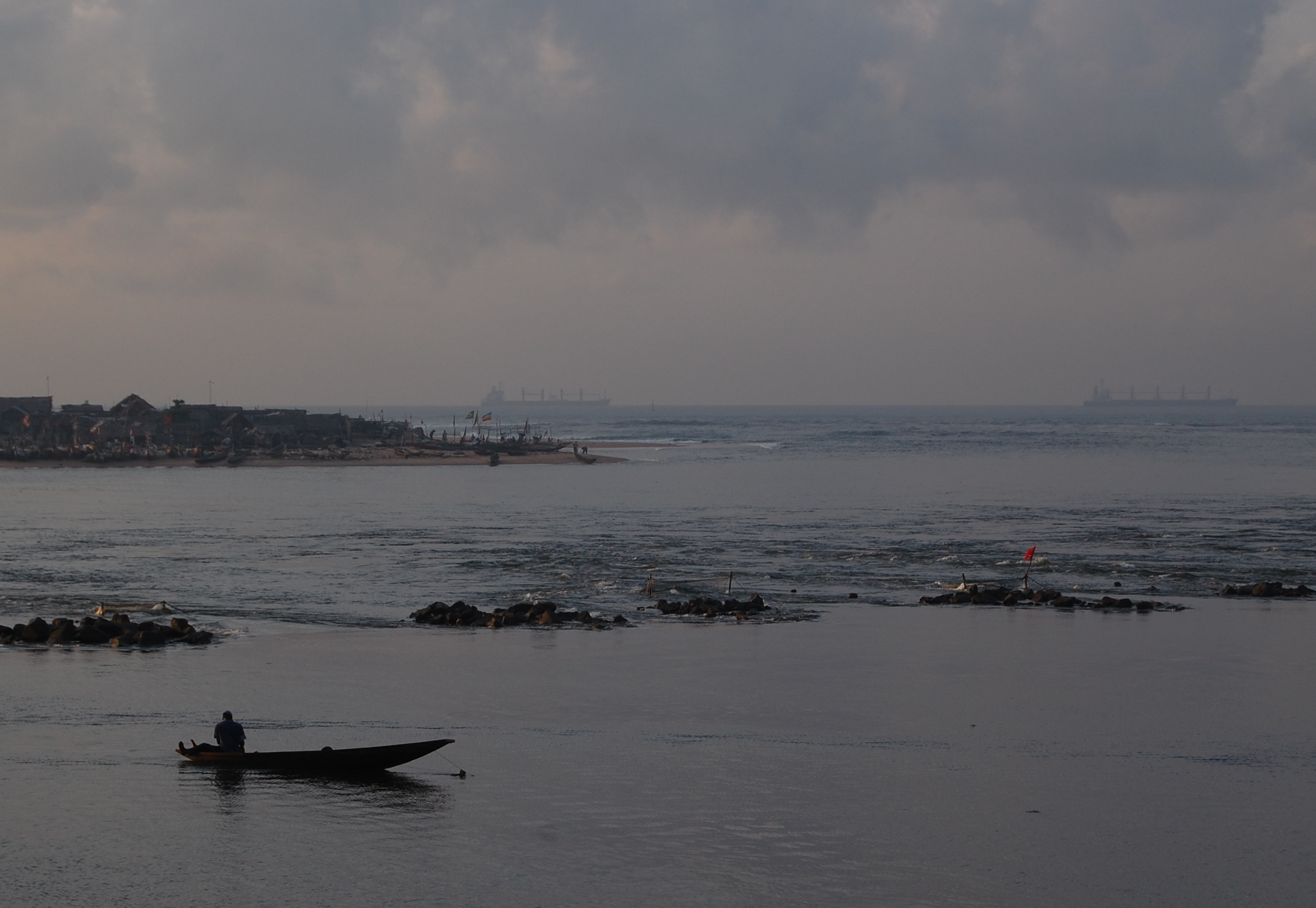 English: Oueme River as it empties in the Atlantic Ocean at Cotonou, Benin |