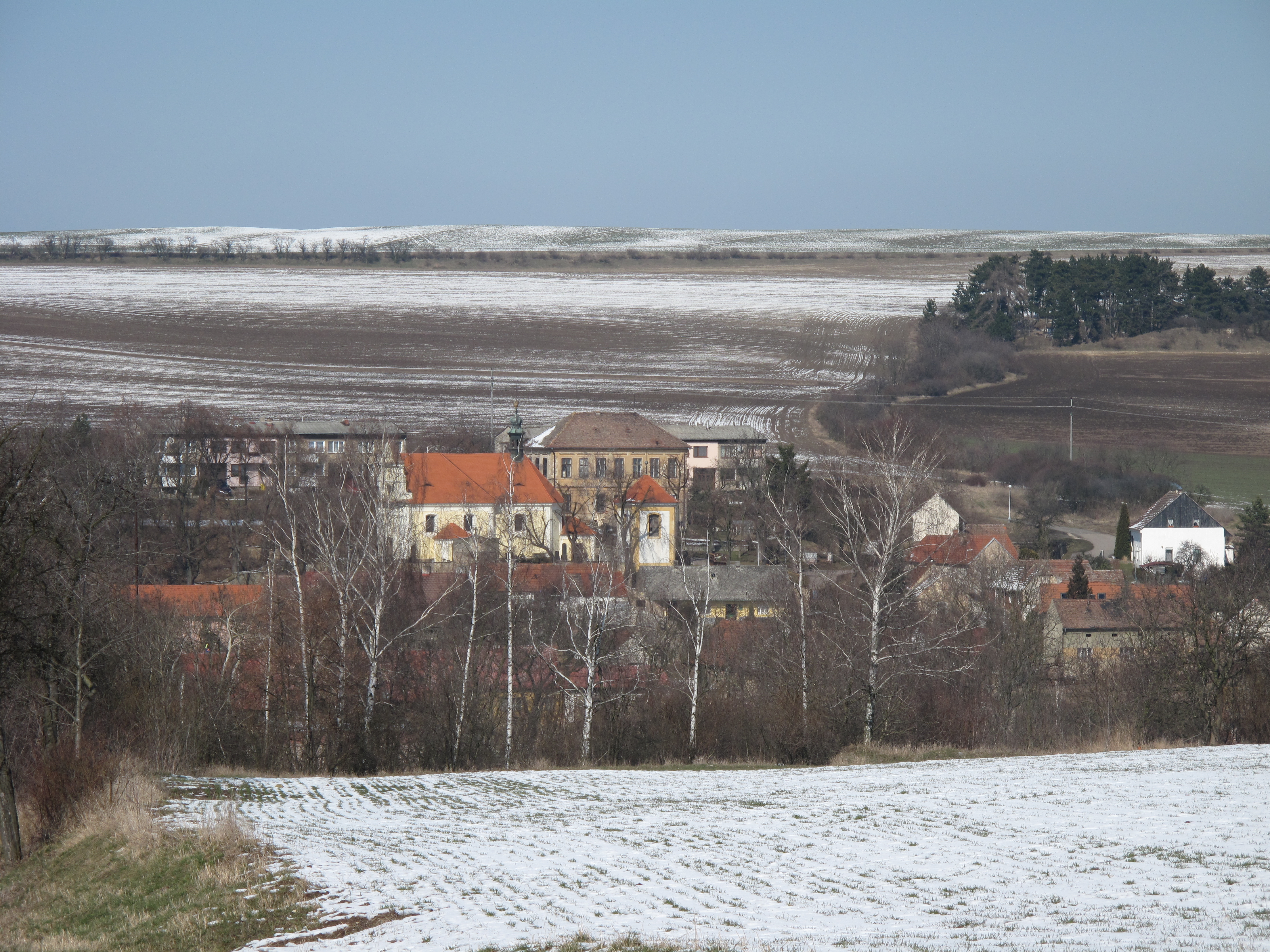 (بالتشيكية) English: Páleček village as seen from the south, Kladno District, Czech Republic. |