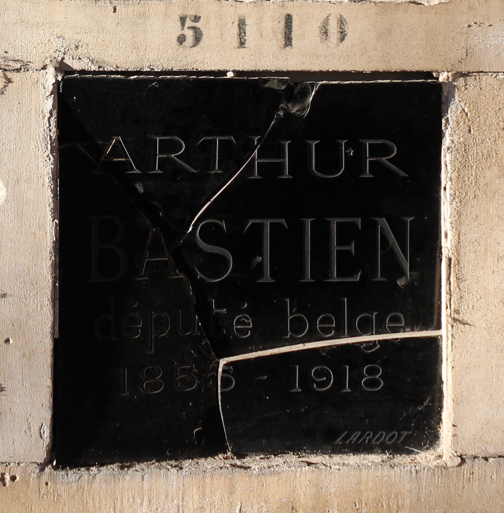 Français : Case n°5110 d'Arthur Bastien (1855-1918) au columbarium du cimetière du Père-Lachaise. |