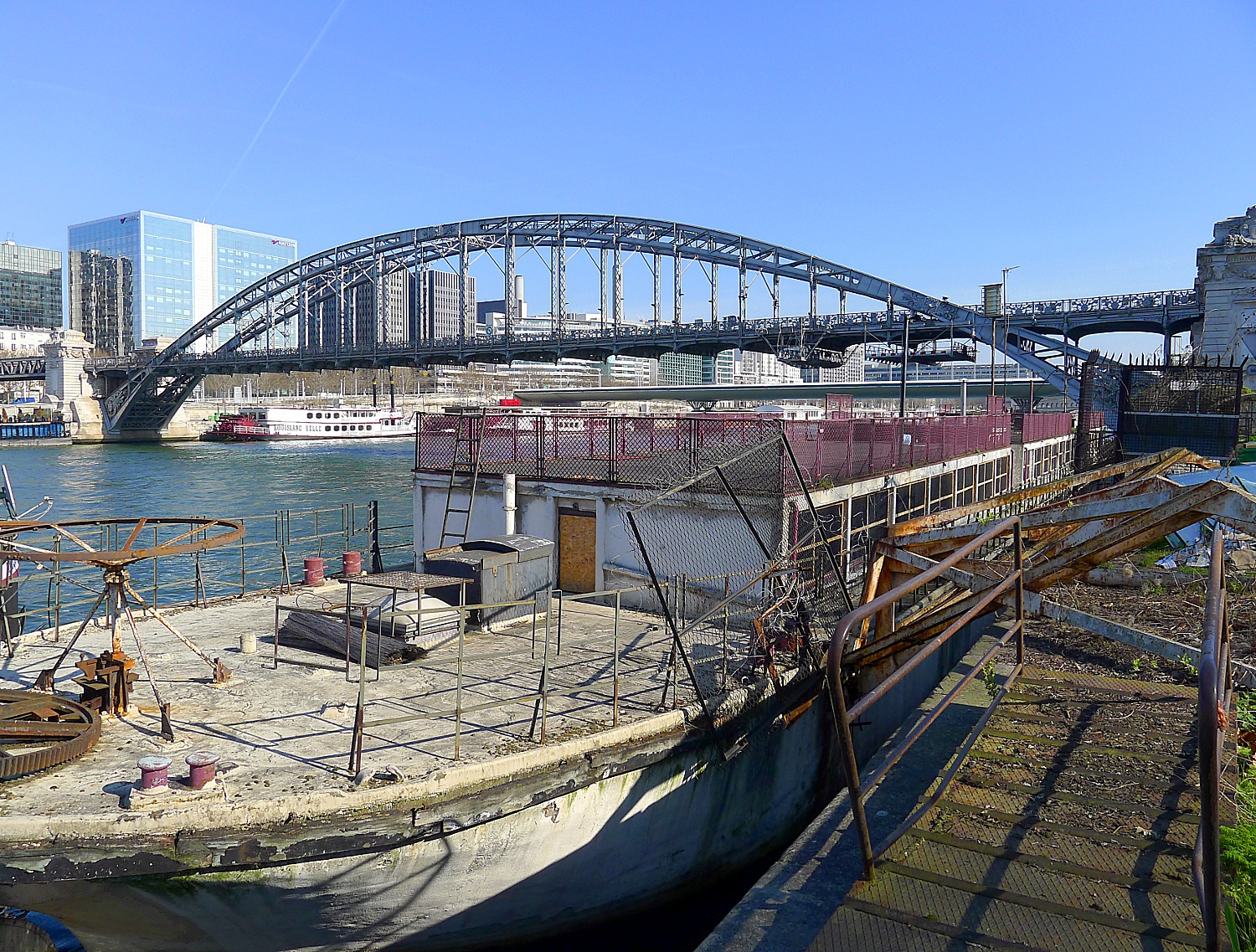 Français : Viaduc et port d'Austerlitz avec la péniche "Louise-Catherine" - Paris XIII |