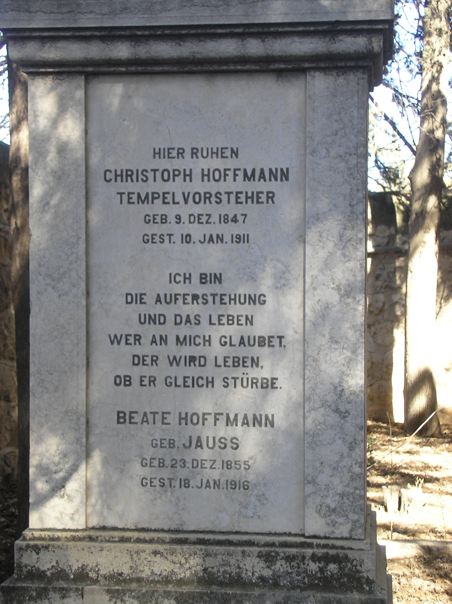 Deutsch: Gräber Christoph Hoffmanns (1847–1911) und Beate Hoffmanns (geb. Jauss; 1855–1916) auf dem Templerfriedhof im ʿEmeq Repha'im, Jerusalem Templer Cemetery