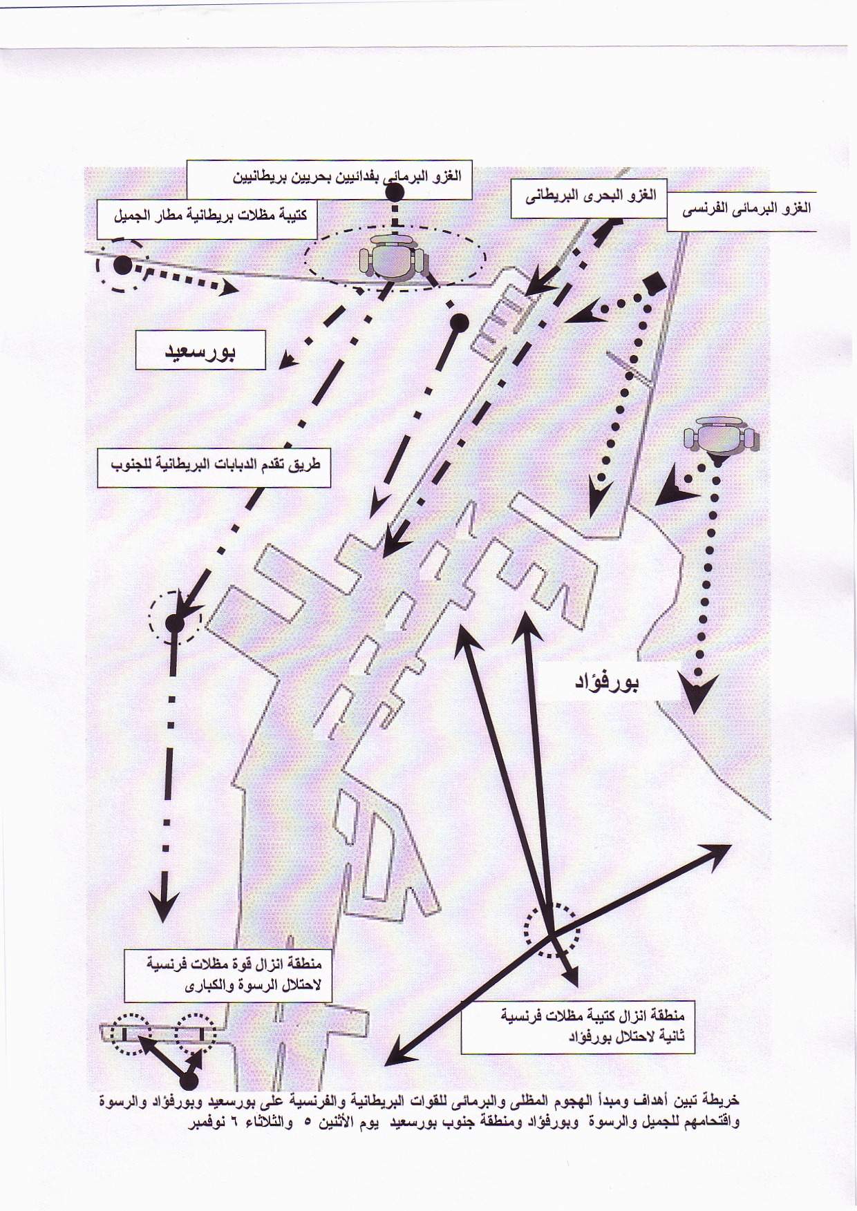 أهداف ومبدأ الهجوم المظليالأنجلوفرنسي علي بورسعيد وبورفؤاد يوم الإثنين 5 نوفمبر 1956 والإنزال البرمائي والرأسي بالهليوكوبتر يوم الثلاثاء 6 نوفمبر والأربعاء 7 نوفمبر 1956