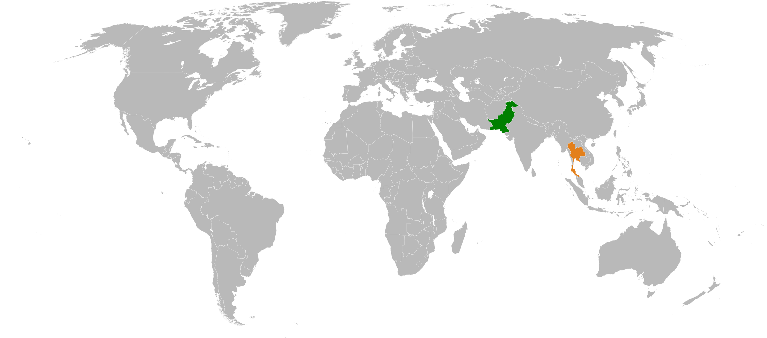 English: Map showing locations of Thailand and Pakistan |