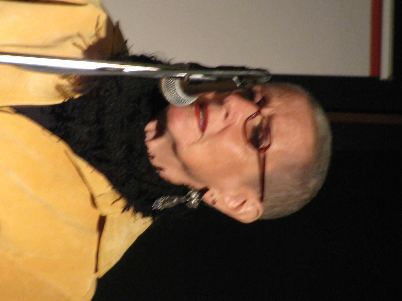 English: Pamela Uschuk reading at Sunday Kind of Love, April 21, 2013 |