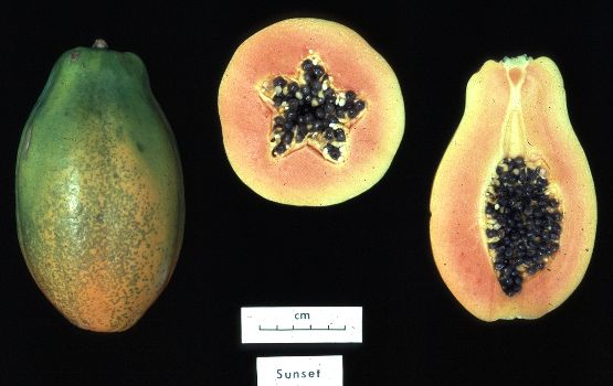 Carica papaya, fruit of cultivar 'Sunset'