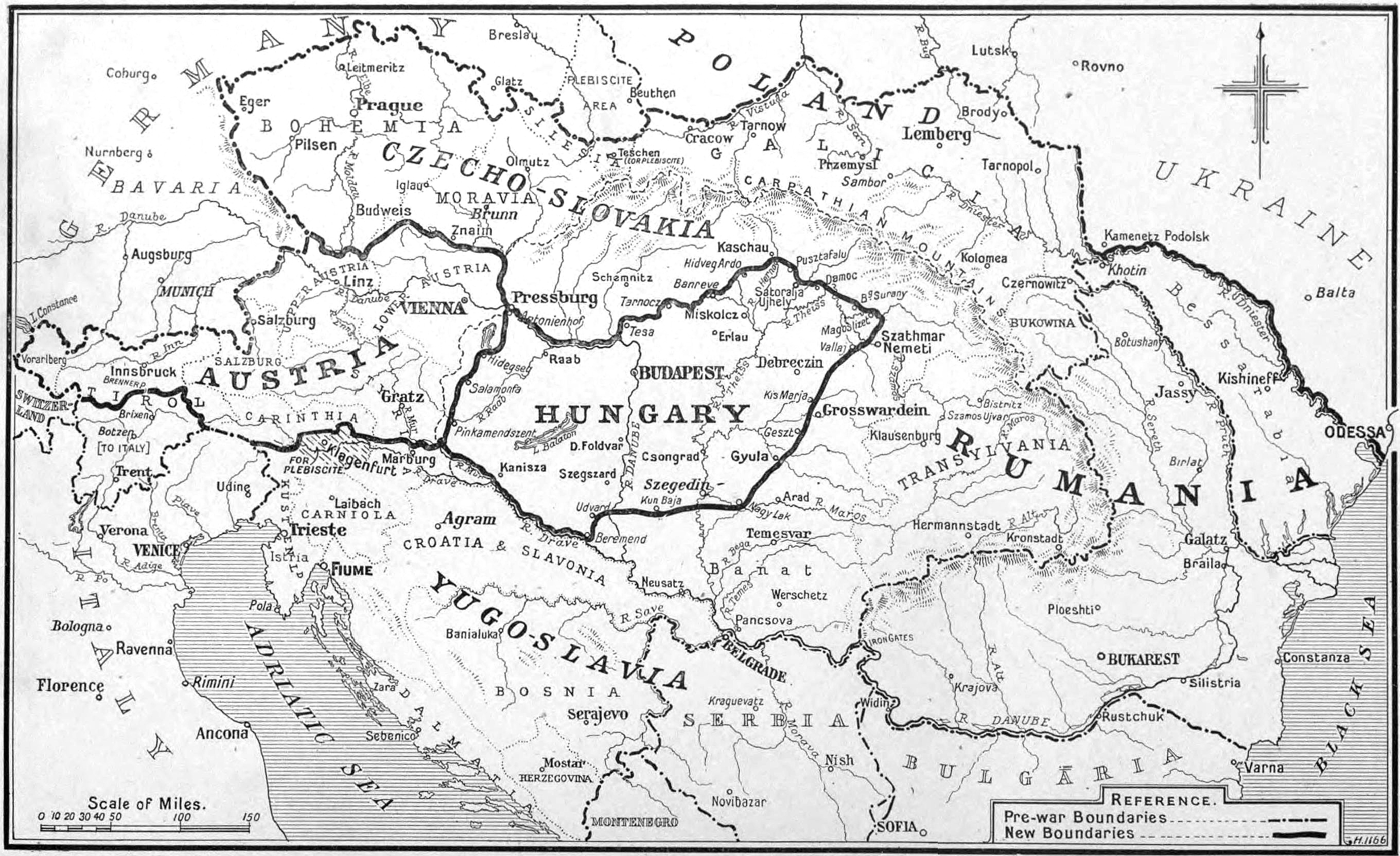 English: The partition of Austria-Hungary showing the boundaries as defined in the treaties |