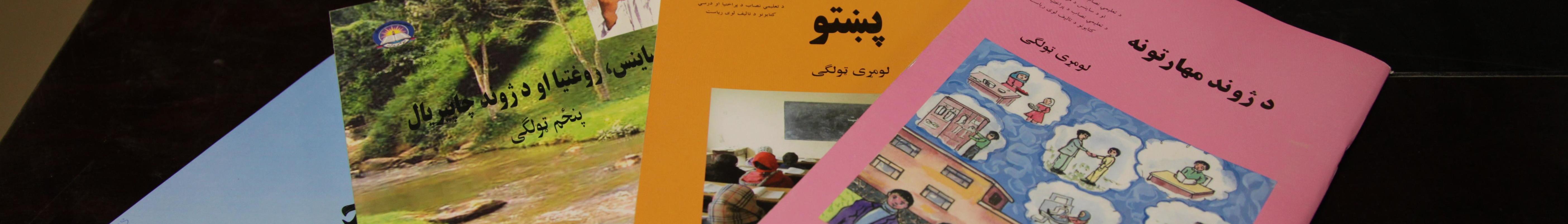 English: These eight books are samples of more than 40,000 textbooks written in Pashtu distributed to Afghan school children in five districts in Paktika province by the provincial education department with the help of the development team from Task Force Currahee, 4th Brigade Combat Team, 101st Airborne Division April 8-25. (Photo ID: 399083) |