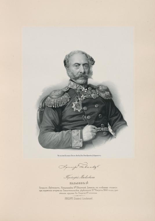 | Source | "Портреты лиц, отличившихся заслугами и командовавших действующими частями в войне 1853-1856 годов". Т. 1. СПб., 1858-1861 |