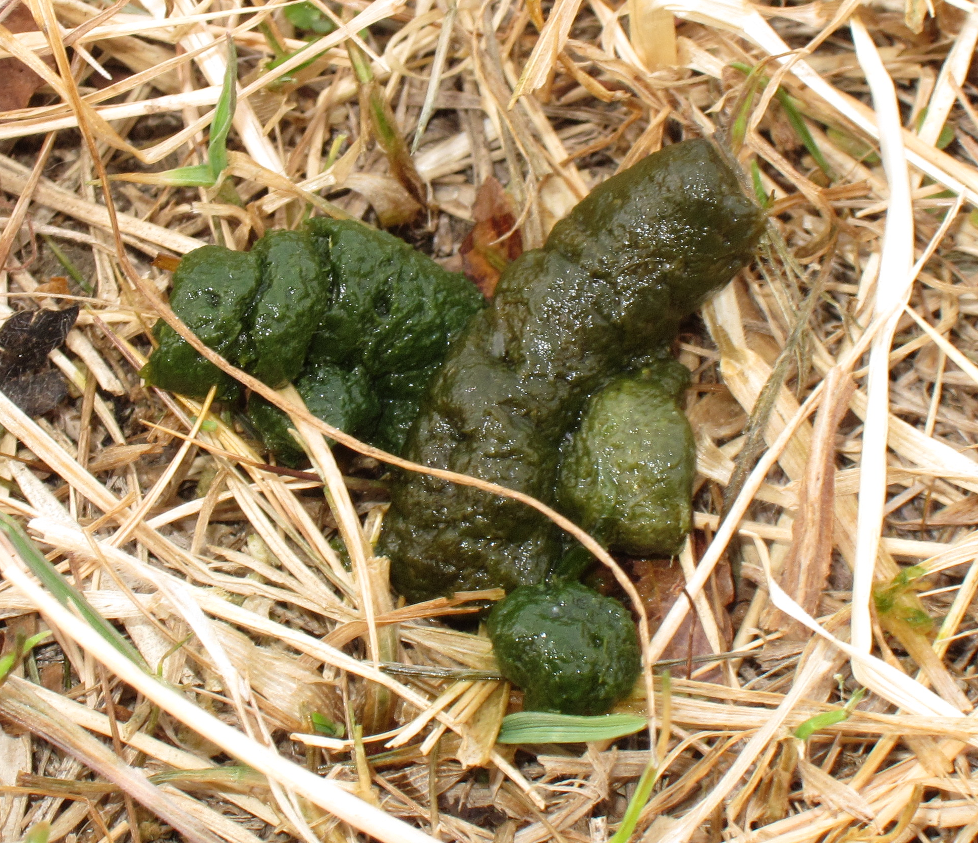 English: wet pellets of a eurasian wigeon bird (hidori-gamo) at a river (saka-gawa) in chiba pref., japan. |