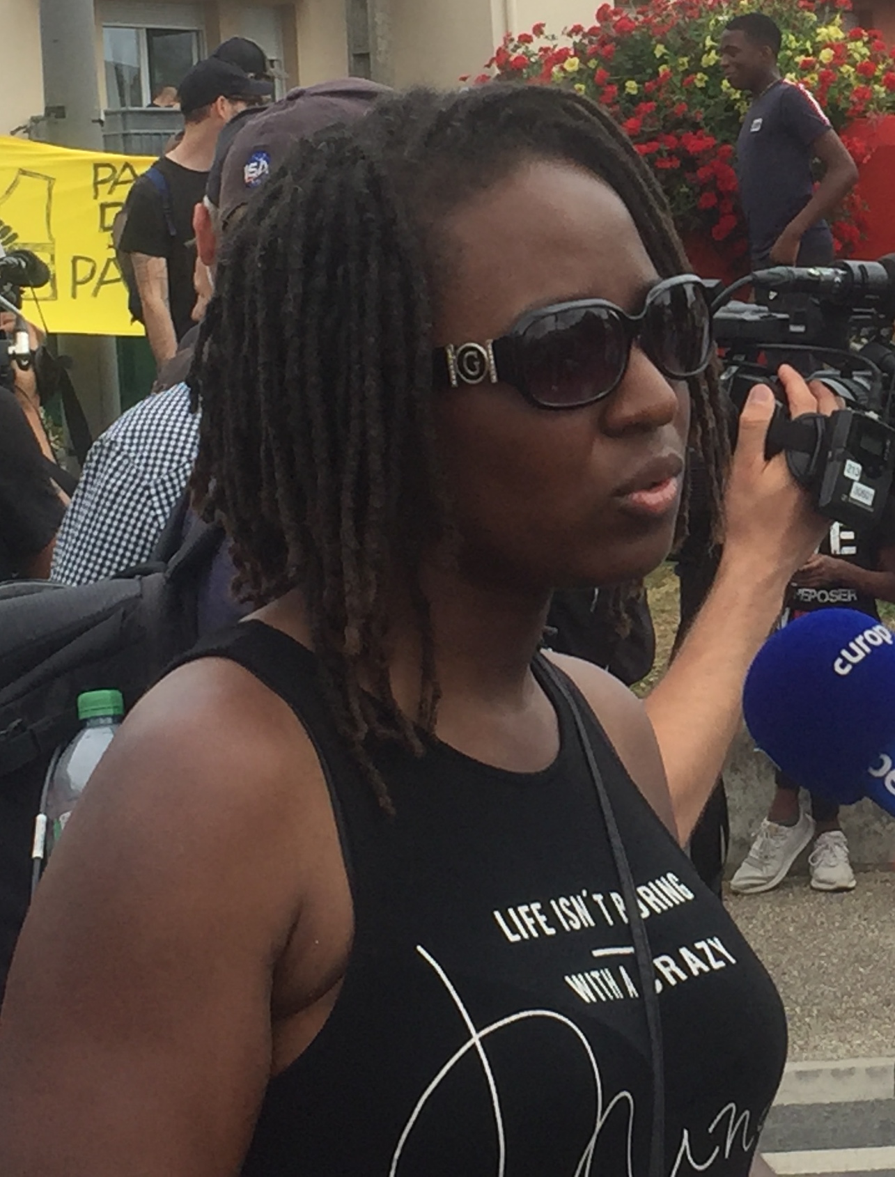 Français : Priscillia Ludosky, figure du mouvement des Gilets jaunes, à la Marche pour Adama le 19 juillet 2019 devant la gare de Persan-Beaumont. |