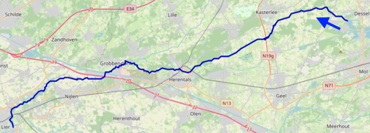 Français : Carte OSM du cours de la Petite Nèthe, Belgique |