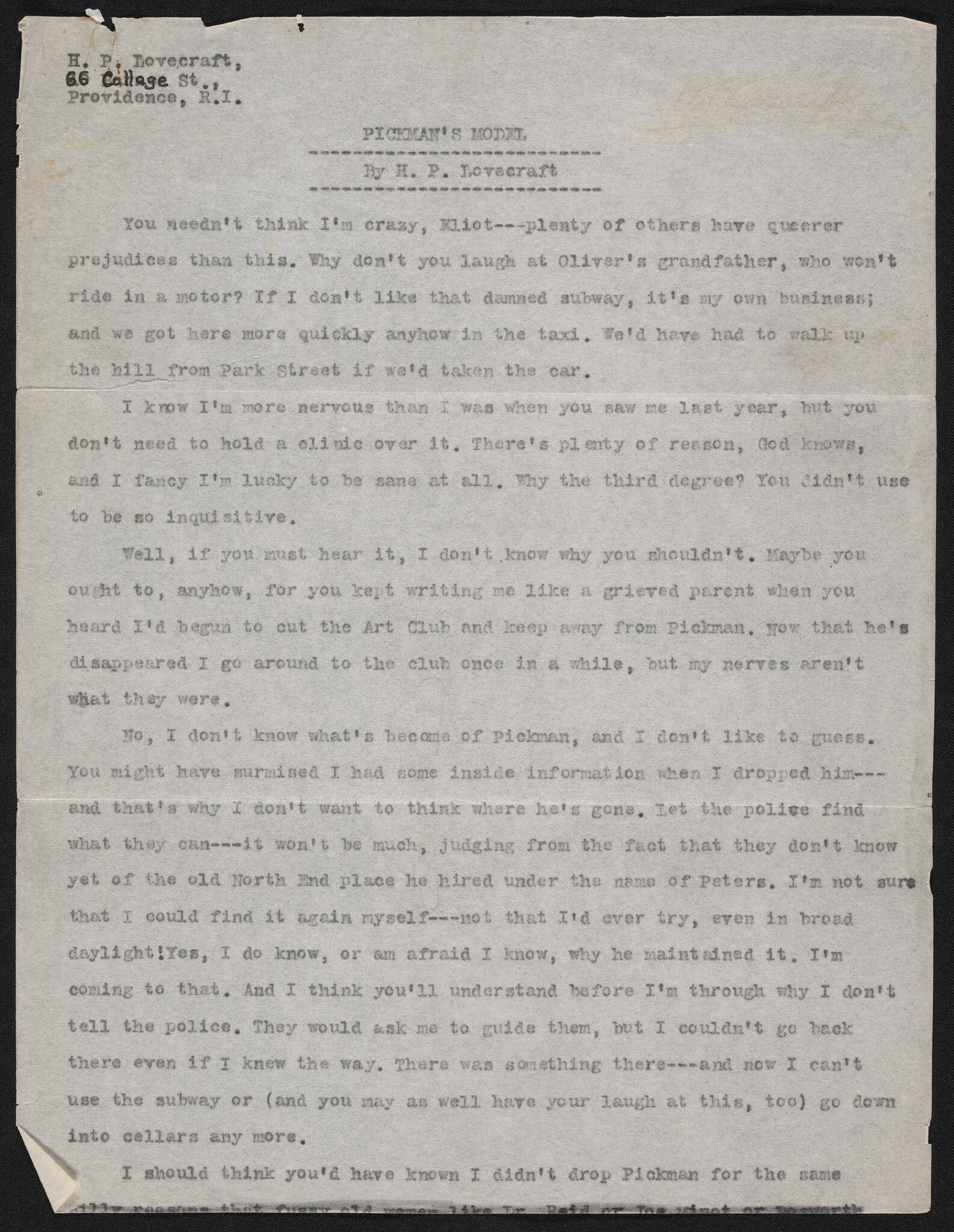 | Source | Lovecraft, H. P. (Howard Phillips), "Pickman's Model" Howard P. Lovecraft collection. Brown Digital Repository. Brown University Library. https://repository.library.brown.edu/studio/item/bdr:735048/ |