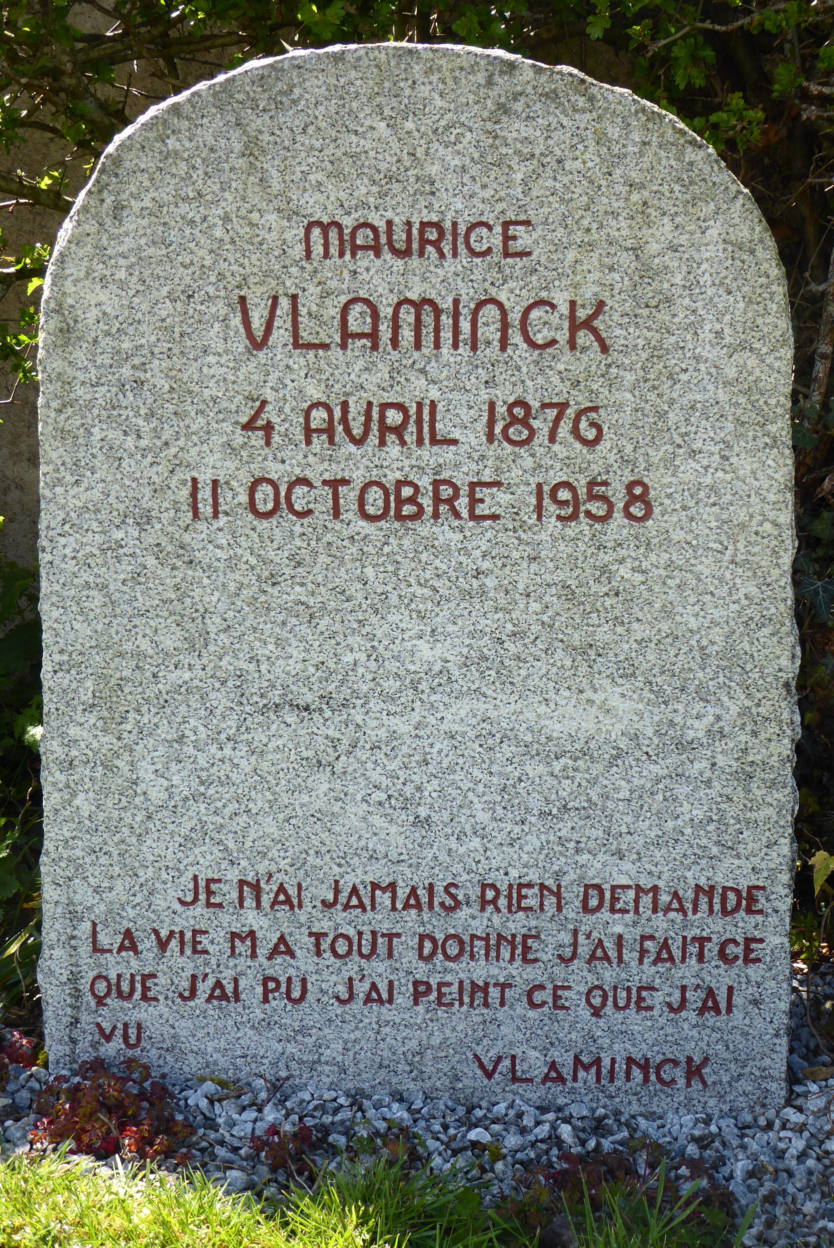 Français : Pierre tombale de Maurice Vlaminck, cimetière de Rueil-la-Gadelière, Eure-et-Loir (France). « Je n'ai jamais rien demandé |