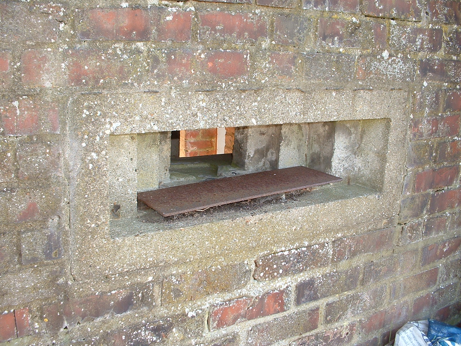 Pillbox embrasure with shutter. On a pillbox near Cove Green, Farnborough. OS reference SU862558 Photographed on 19-Mar-06. |