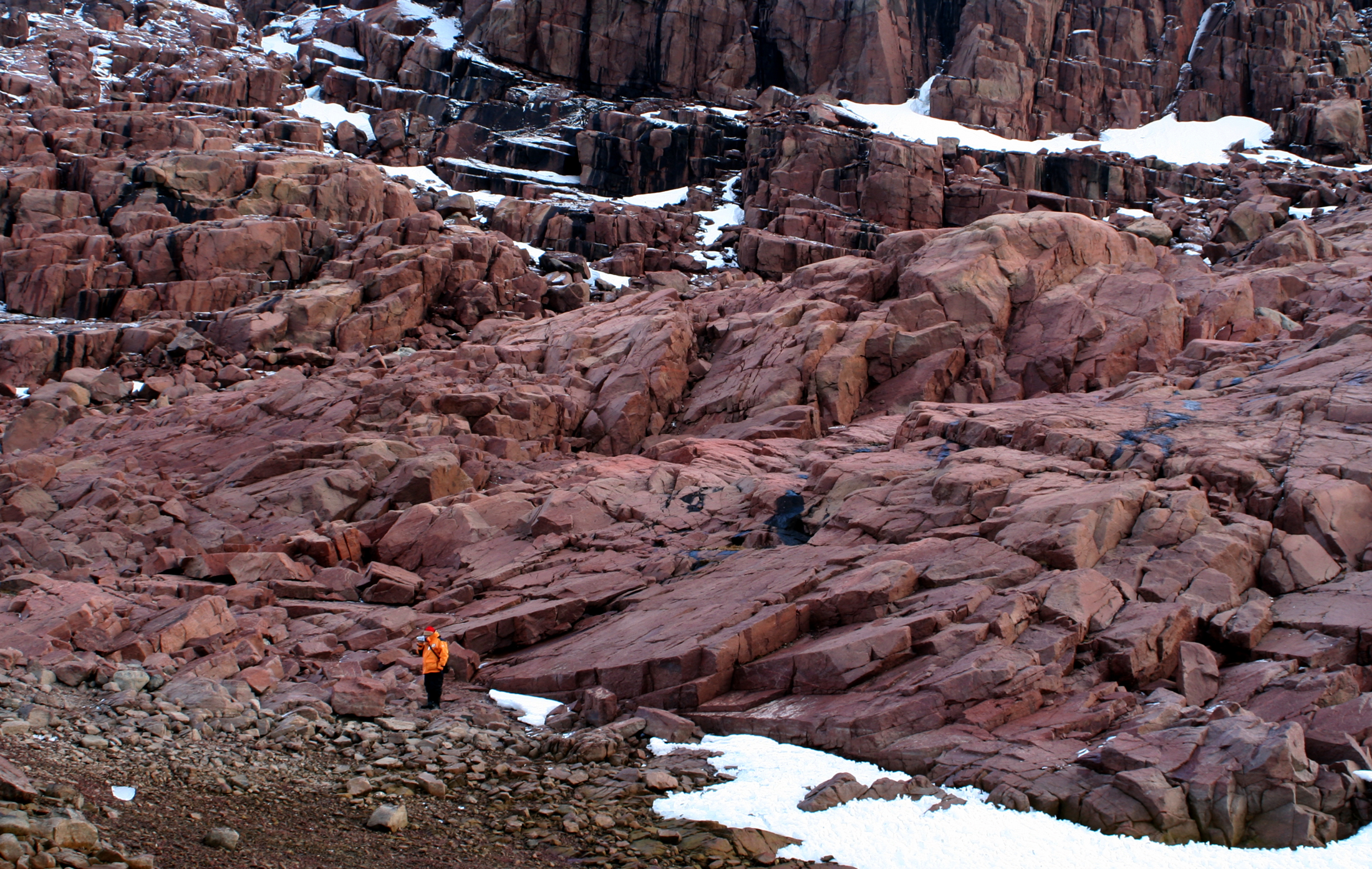 Description w:Cape Sabine at Pim Island, w:Arctica, where famous polar explorer Adolphus Greely waited to be rescued. By the time the ships arrived on June 22, 1884 to rescue the expedition 19 of Greely's 25-man crew had perished from w:starvation, w:drowning, w:hypothermia, and in one case, gunshot wounds from an execution ordered by Greely.