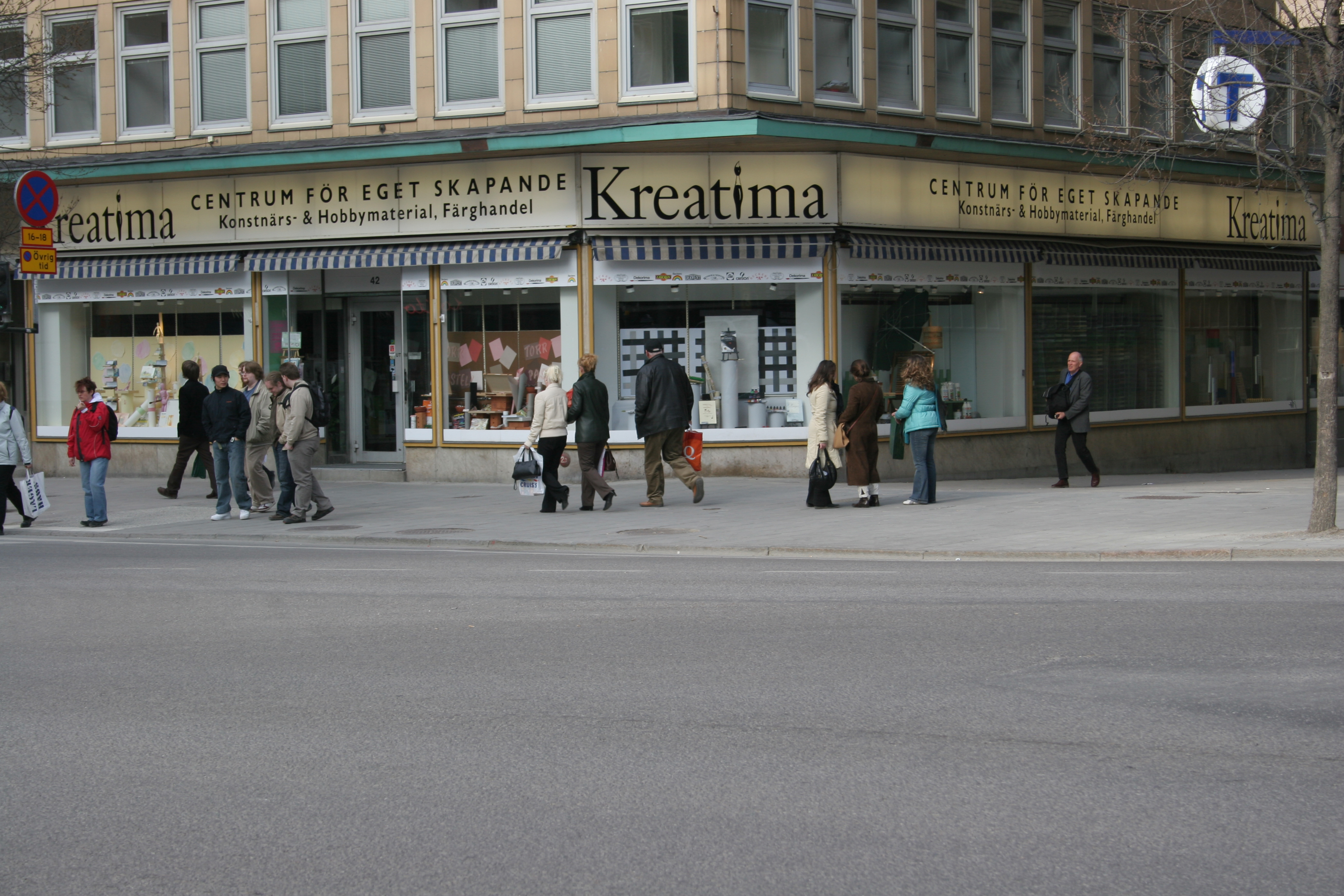 | Description | Place of Olof Palme's murder. Sveavägen-Tunnelgatan, Stockholm, Sweden. Picture taken from the southwest corner of the crossing of Sveavägen, Tunnelgatan and Olof Palmes gata. The exact place of the murder is where the three girls, to the right of the Kreatima sign, are standing. The killer ran into Tunnelgatan (between Kreatima and the T-sign). The shop was called Dekorima in 1986. |