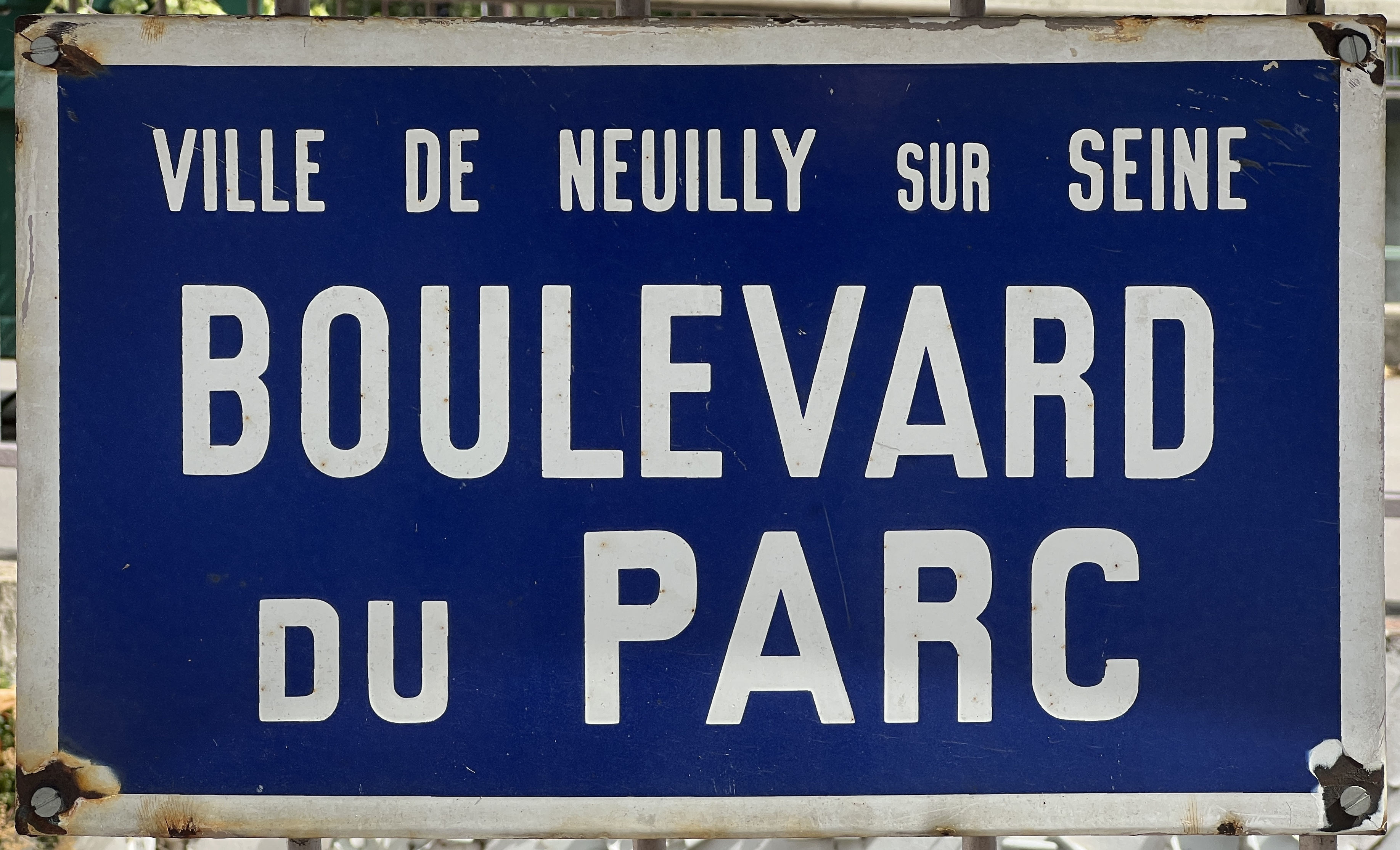 Français : Plaque du boulevard du Parc, Neuilly-sur-Seine. |