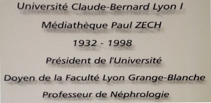 Français : Plaque de la médiathèque Paul-Zech à la faculté de médecine de Lyon (domaine Rockefeller). |