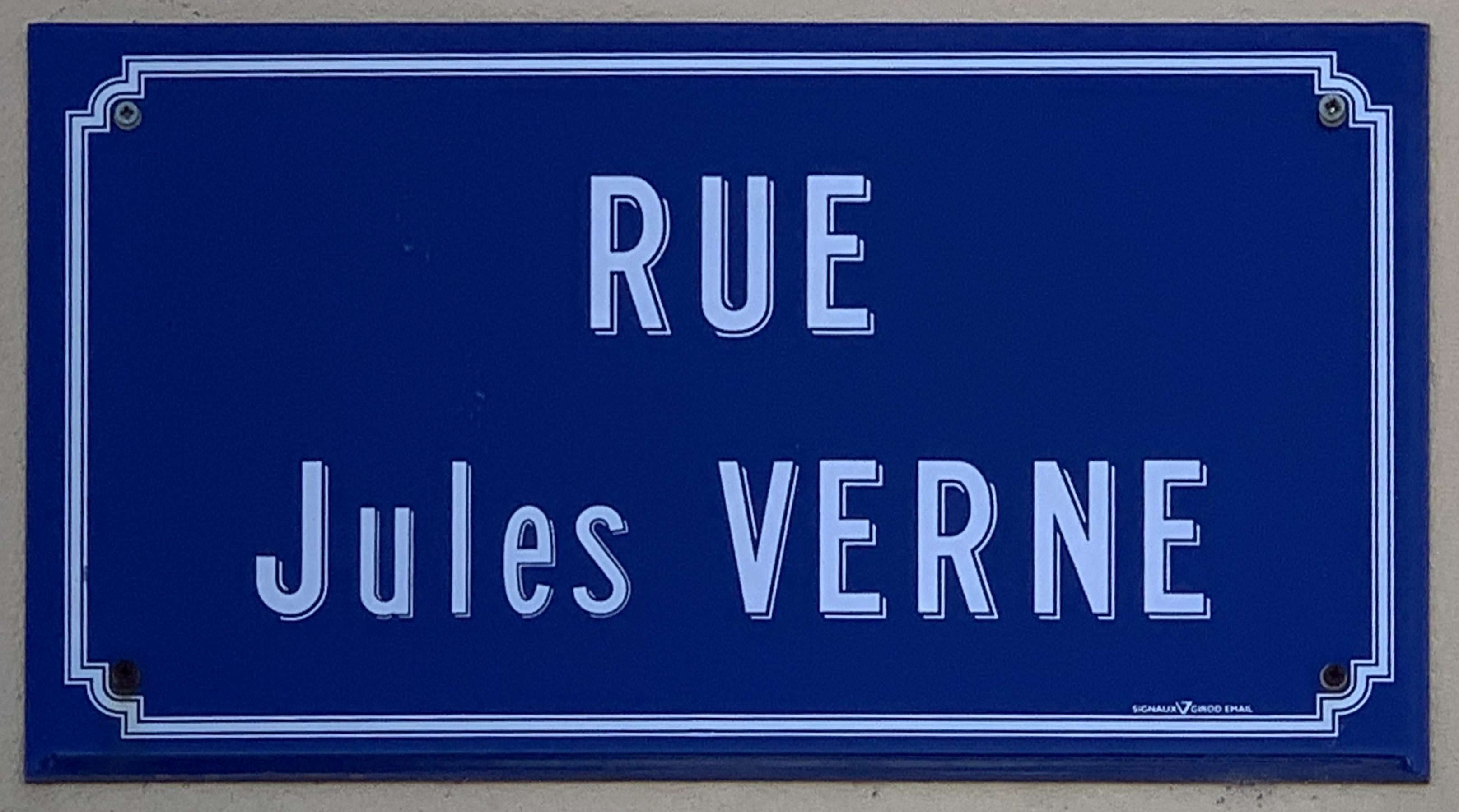 Français : Plaque de la rue Jules Verne, Saint-Laurent-sur-Saône. |