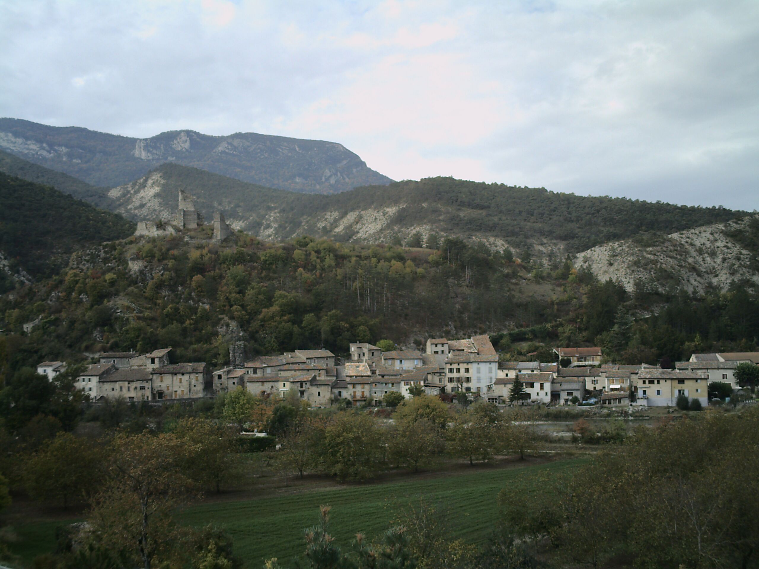 Français : Village de Pontaix, avec les ruines du château English: Town of Pontaix, Drôme, France |