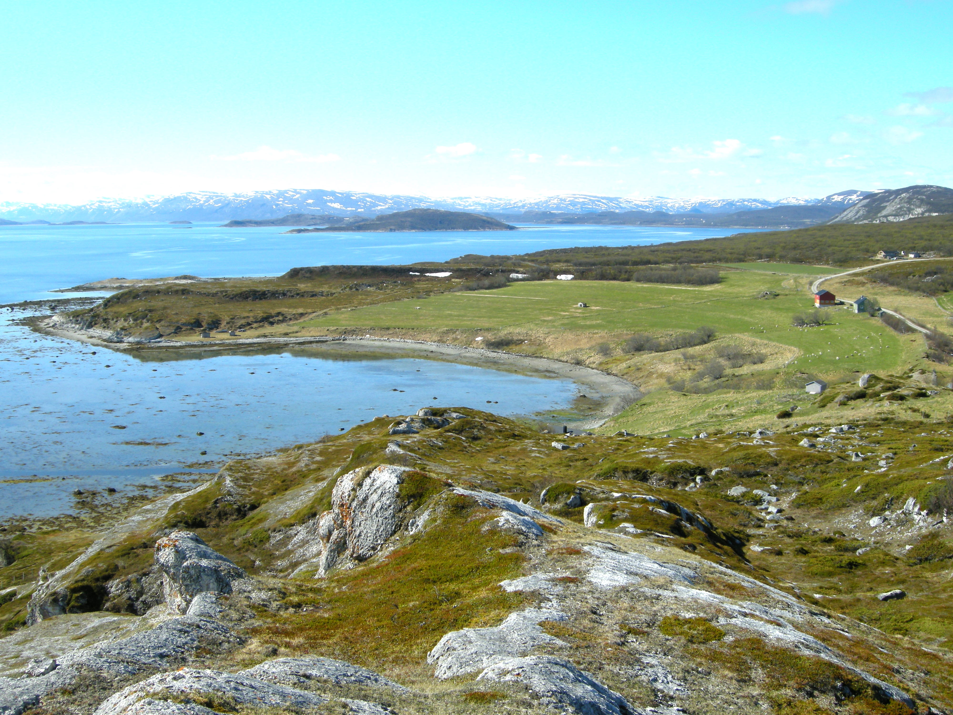 style="background: #ffdddd" class="table-no" | Porsangerfjorden. Utsikt fra dolomittfjellet Áigirjávri sørover mot Orkkanluokta. |