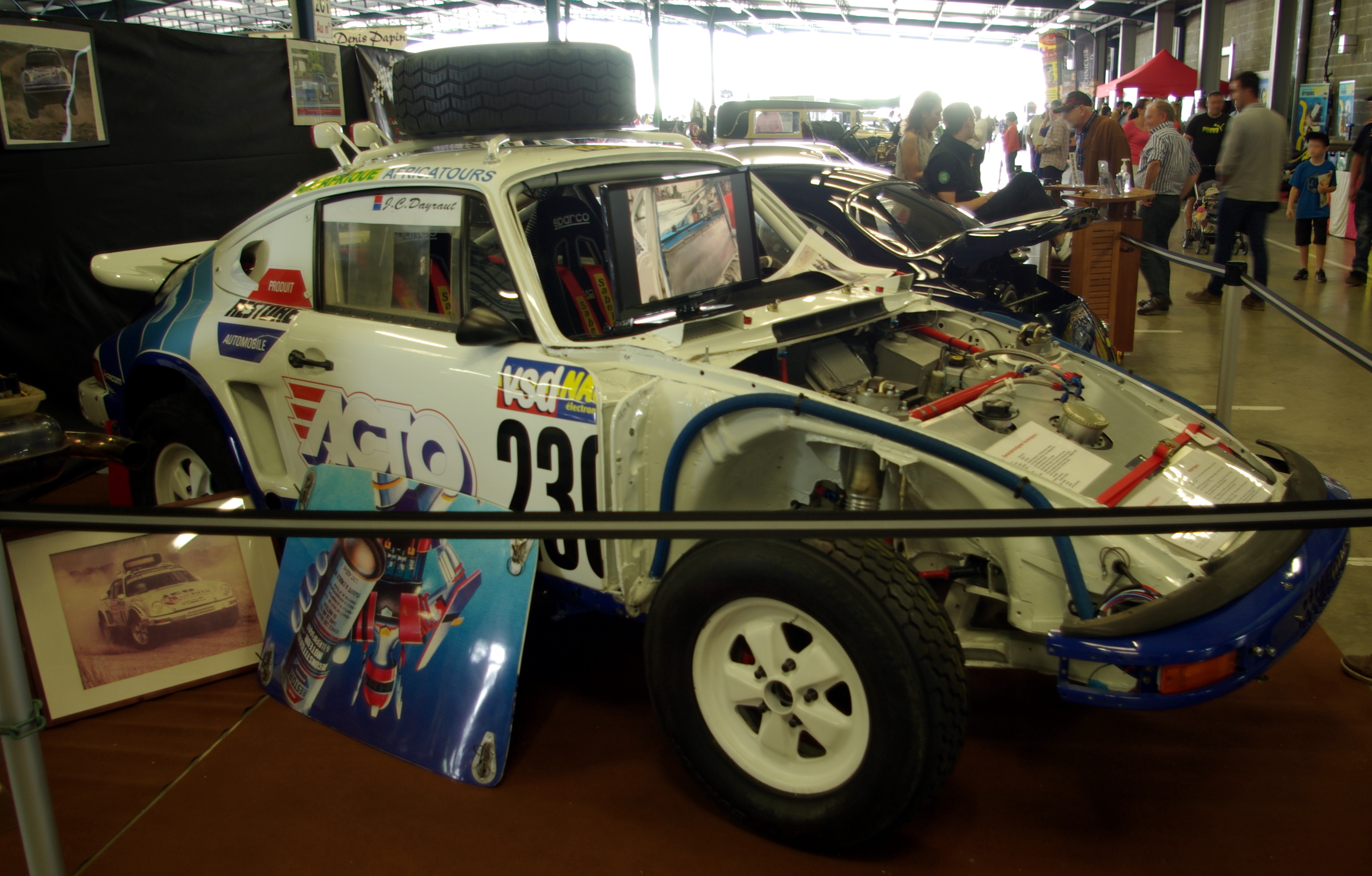 Français : Porsche 911 quatre roues motrice imaginée par Jean-Claude Dayraud. Elle a participé au Paris-Dakar en 1984 et 1985. |