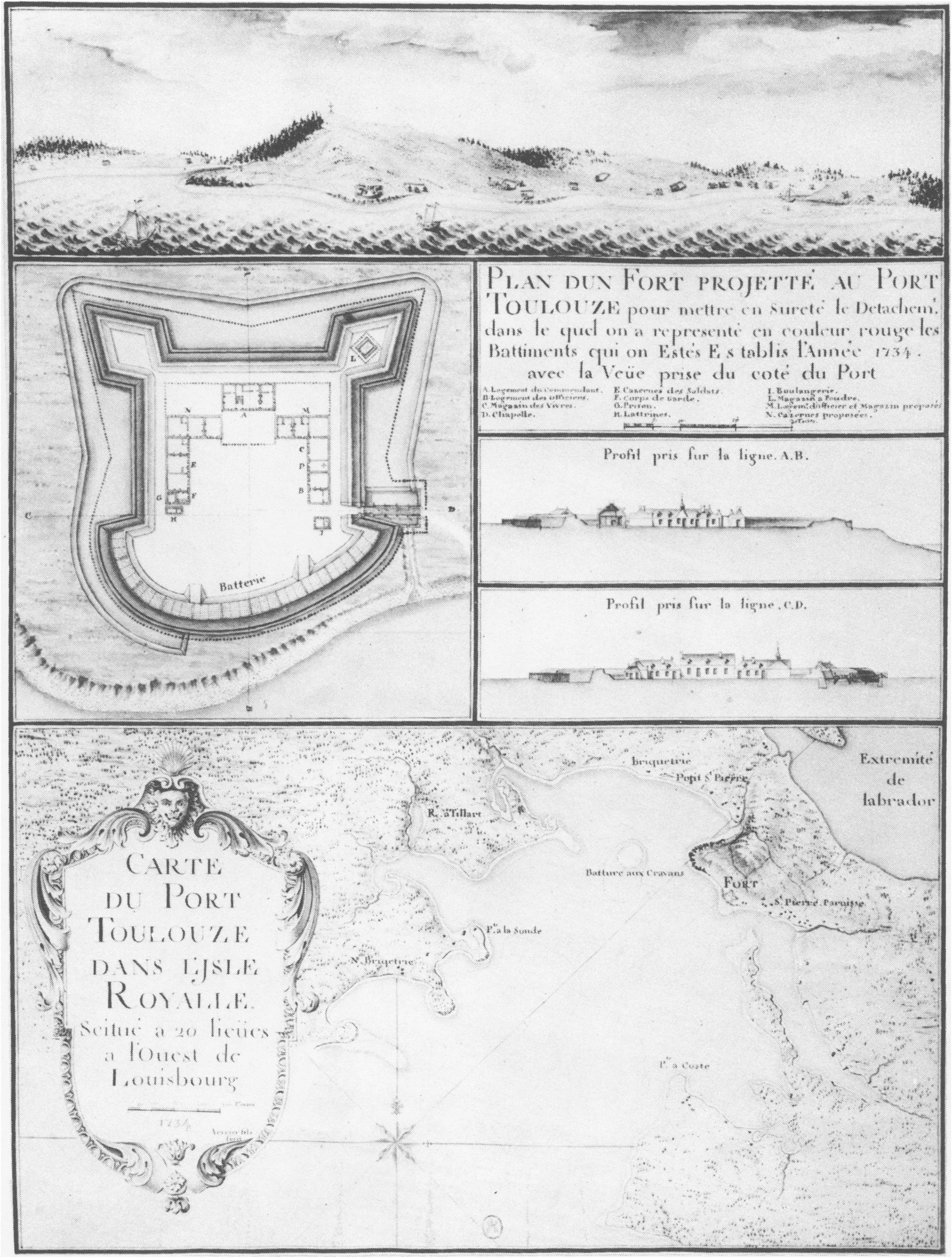 | Description | A military engineer's drawing of the defenses of Port Toulouse, Ile Royale (present-day St. Peters, Nova Scotia). |