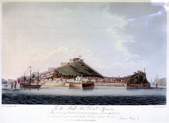 English: An engraving of the town of Porto Ferrajo on the island of Elba, created in 1814 |